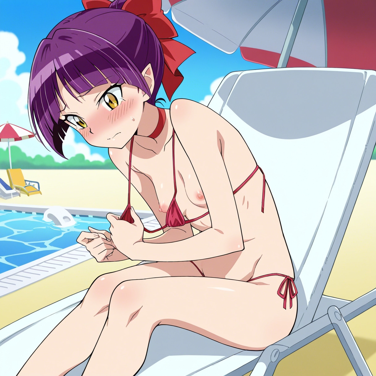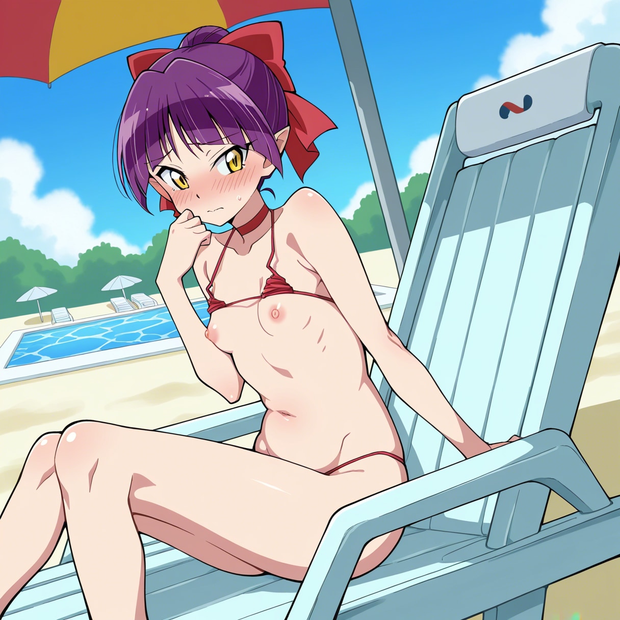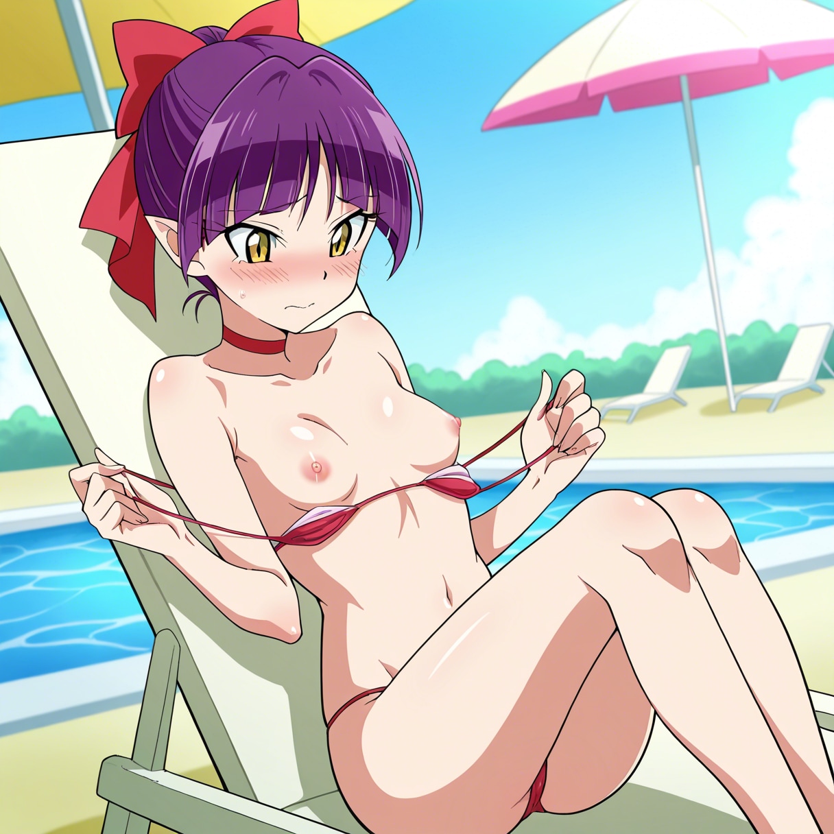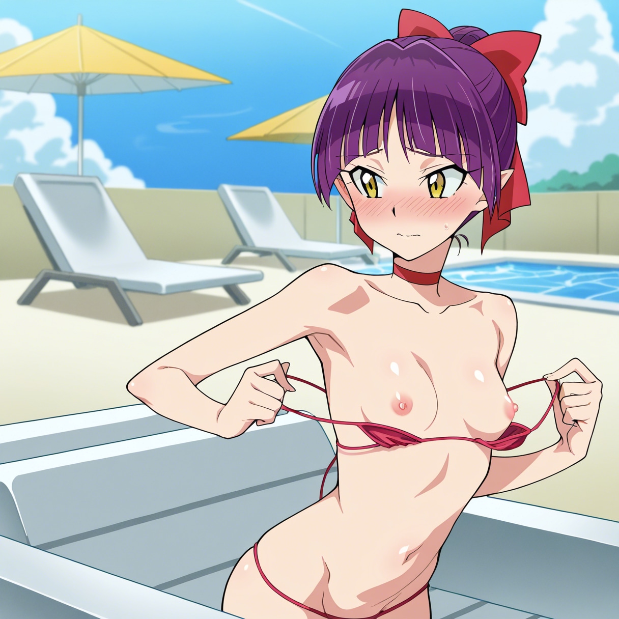 ねこ娘のマイクロビキニでサービスポーズのイラストでR-15からの続きです