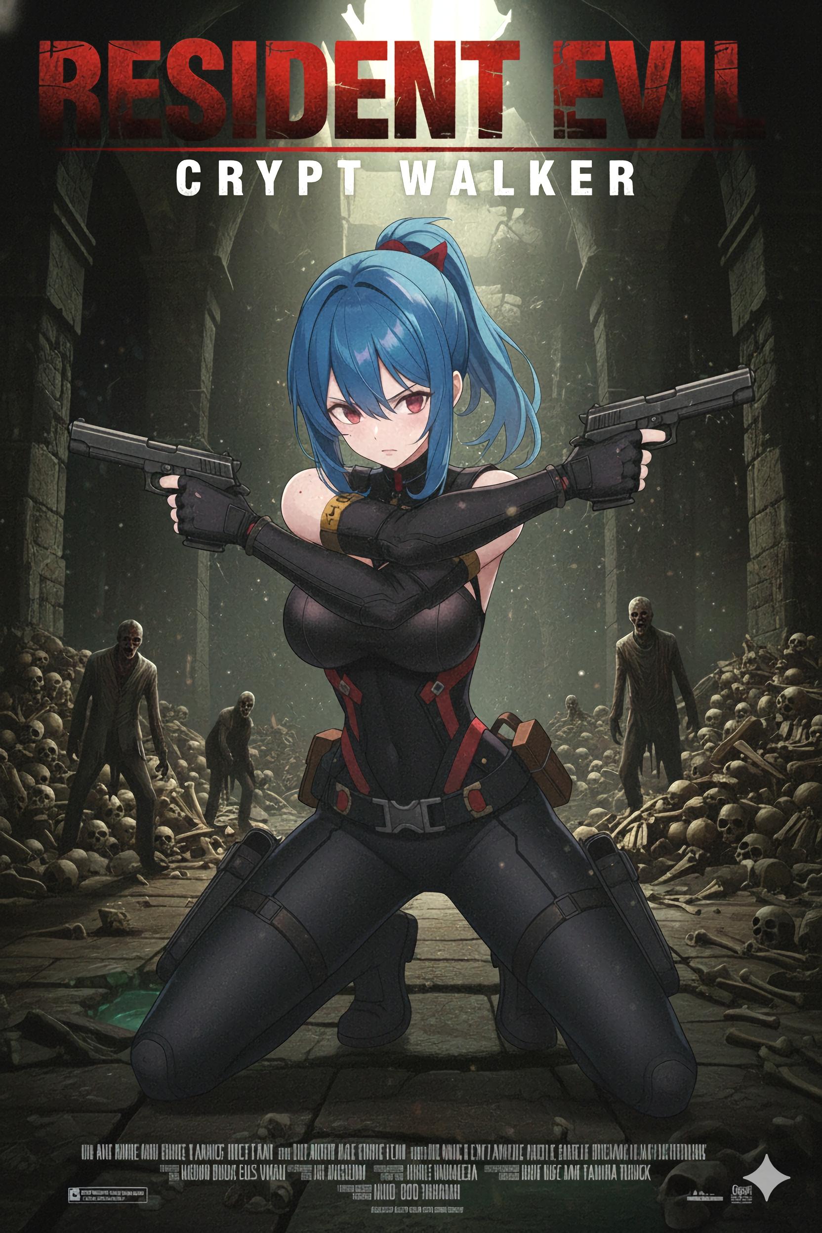 ソラの世界観が敵と戦うアクションものに近いのと、桜木ハルさん企画の死者の日に載っかって、妄想で某ゾンビゲーム&某実写映画風の衣装をpictor(4枚目の画像)で作成してnano-bananaでポスター風に仕上げました(海外版のタイトルでてしまってますが・・)