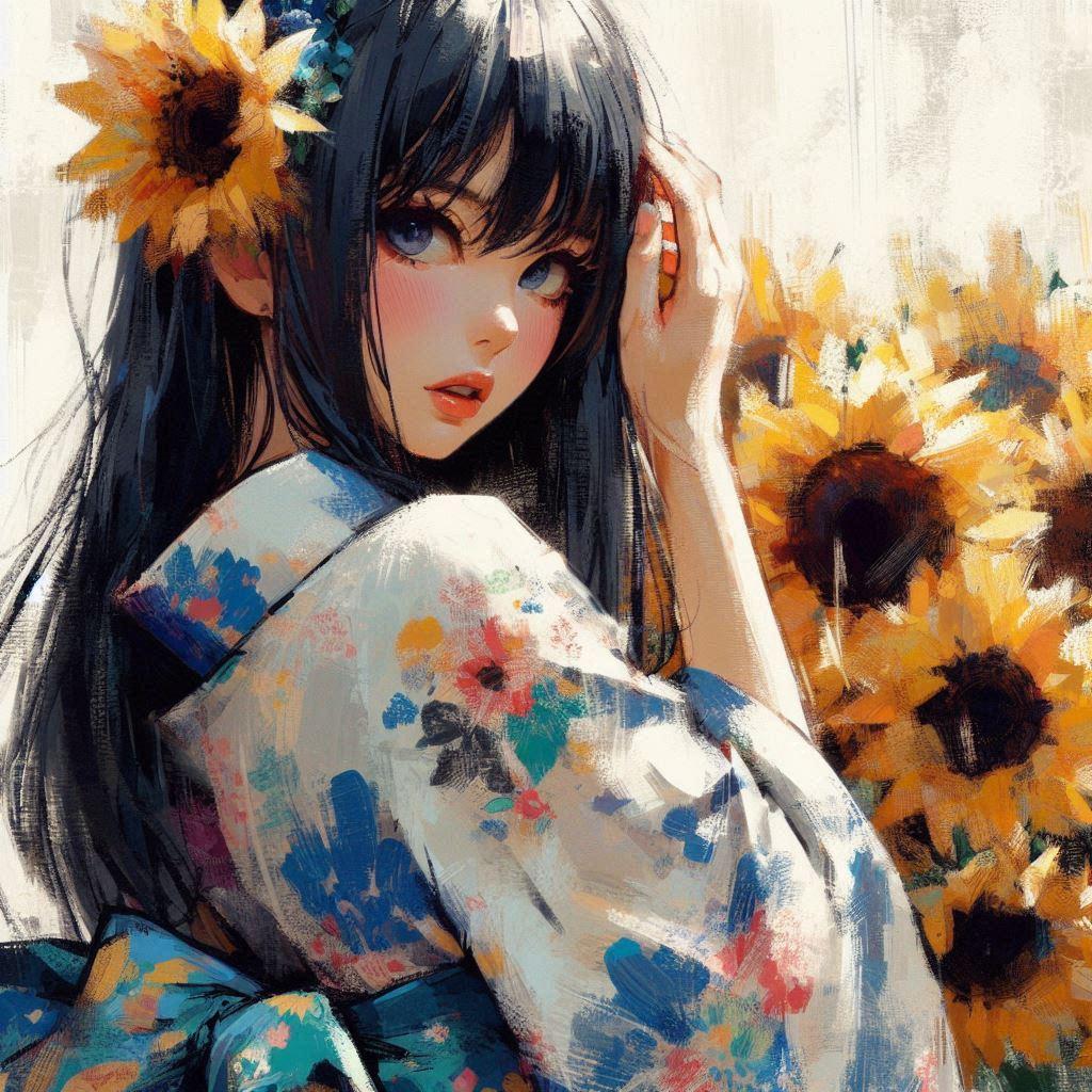 ただ、やはりプロンプトとの相性があるようで、衣装や花を変えてしまうとこのタッチにならない時もあります。