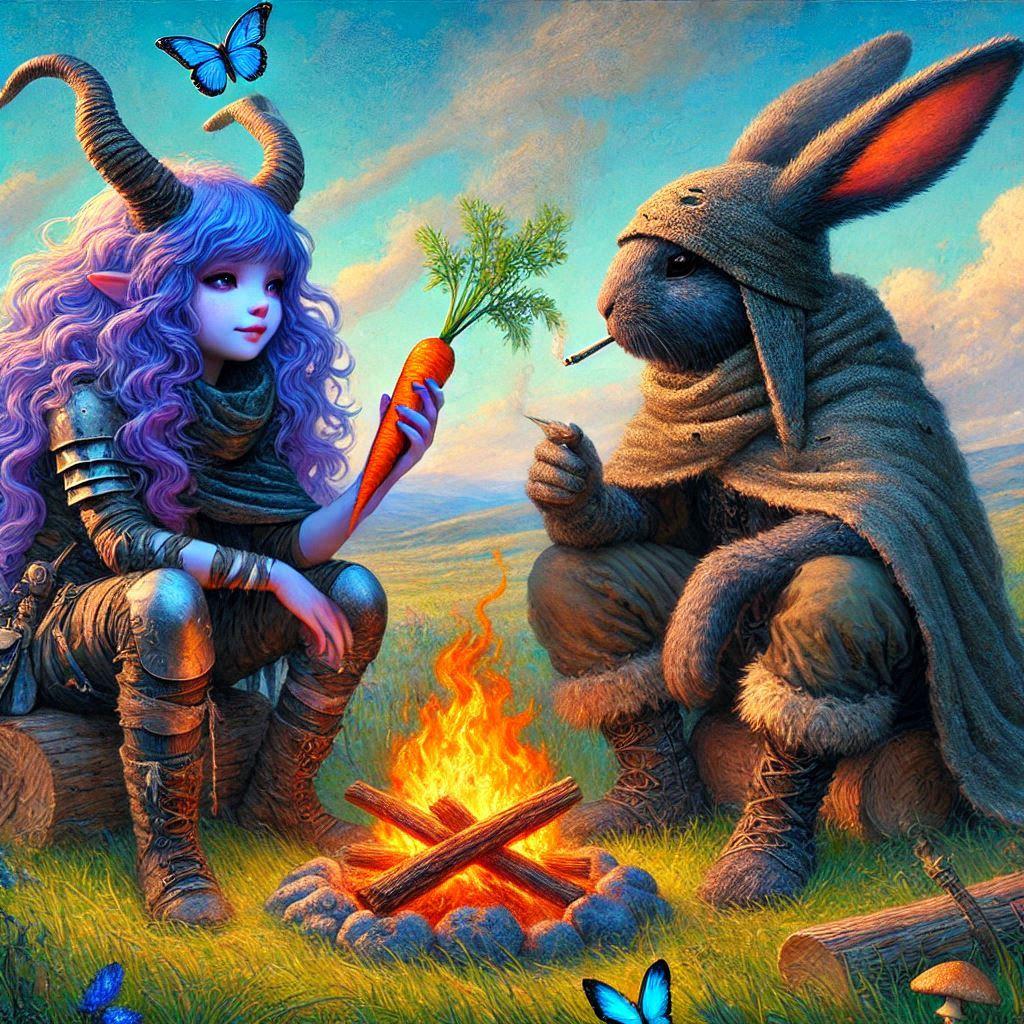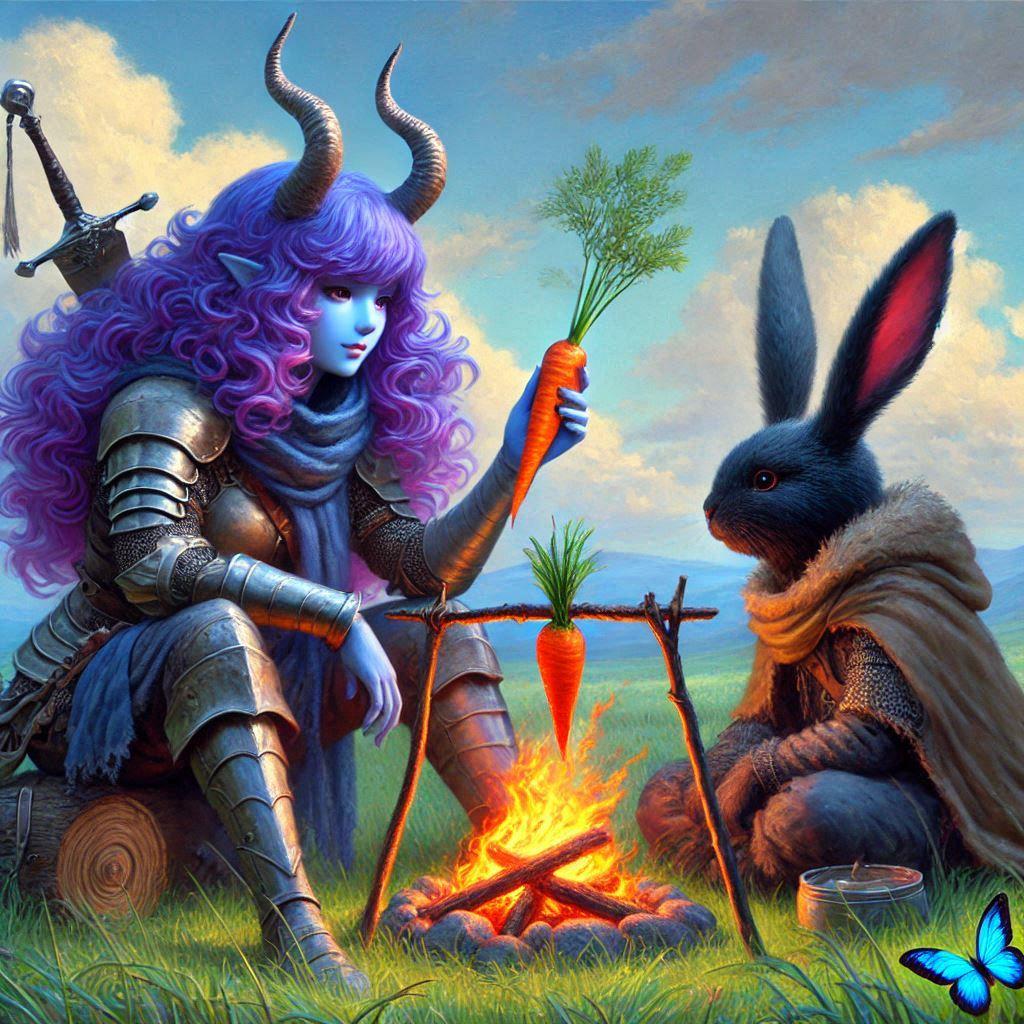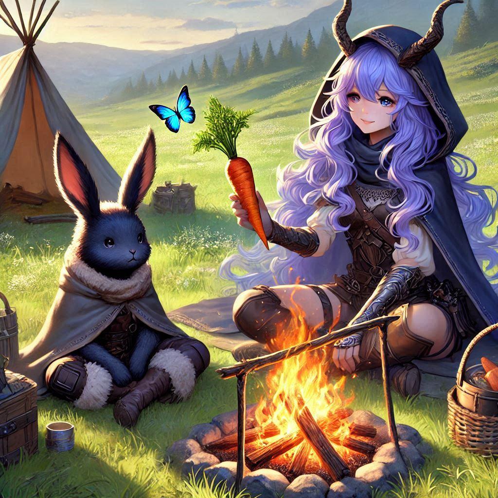 あ、ニンジンはそれくらいの焼き加減でお願いします。スイマセンね、焼いてもらっちまって。