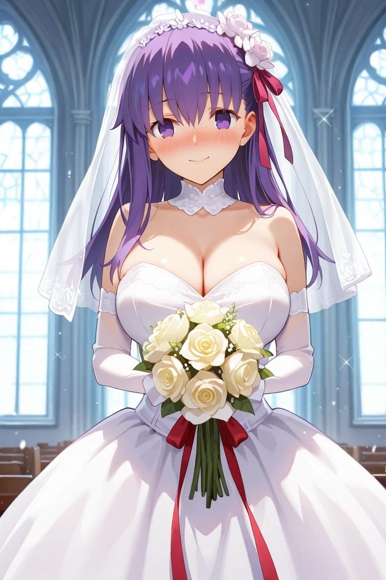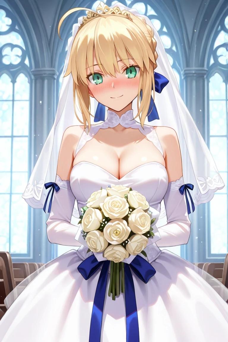 まだ時期(6月)ではありませんが、なぜか脳内でウェディングマーチが再生されるので、Fateシリーズのキャラクターのウェディングドレス姿を生成しました。