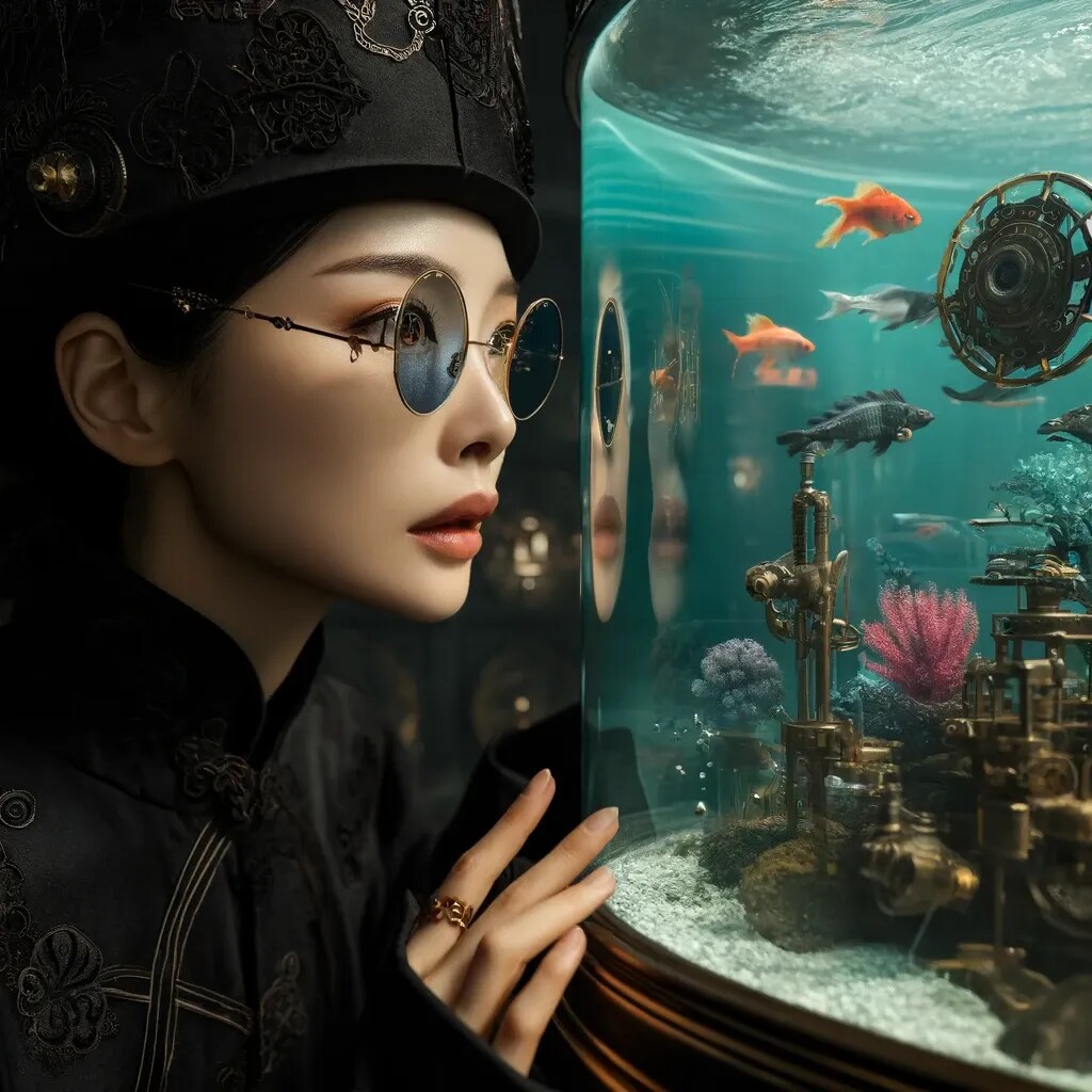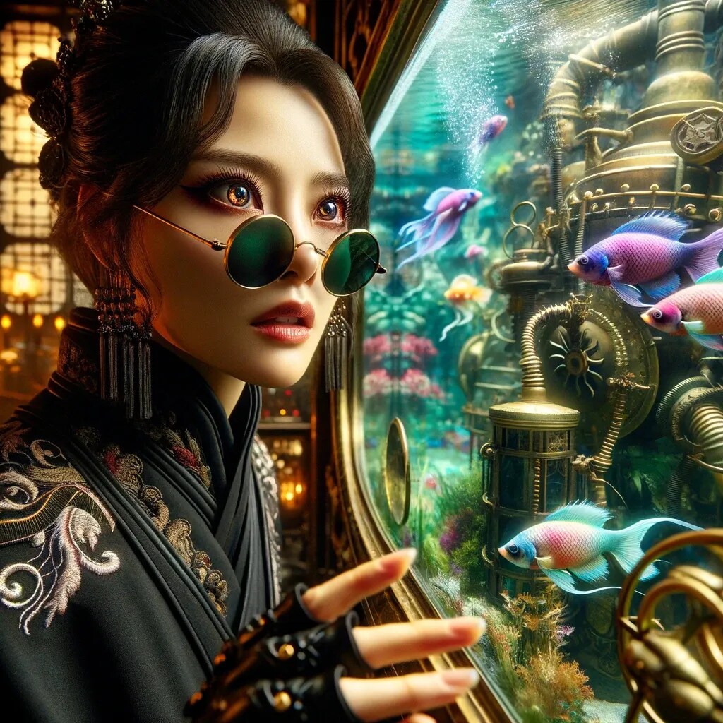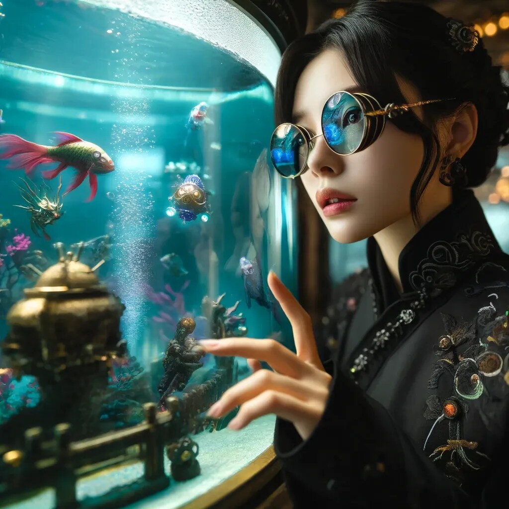 サングラス、水槽、魚の光や色が入り混じって面白いことになったので投稿しました😊