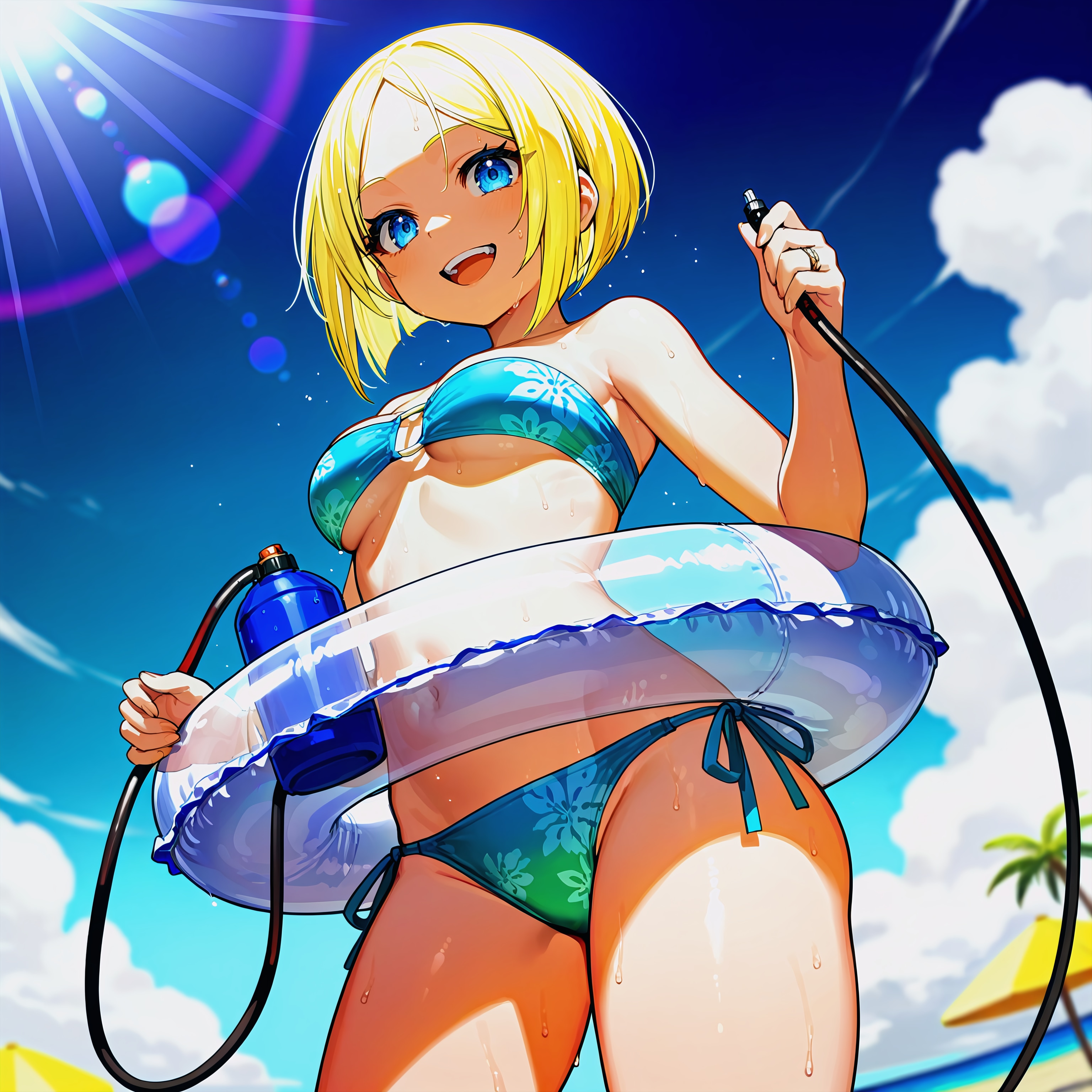 (み・_っ・)さんの浮き輪膨らます女の子企画参加作品です。