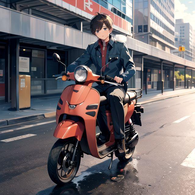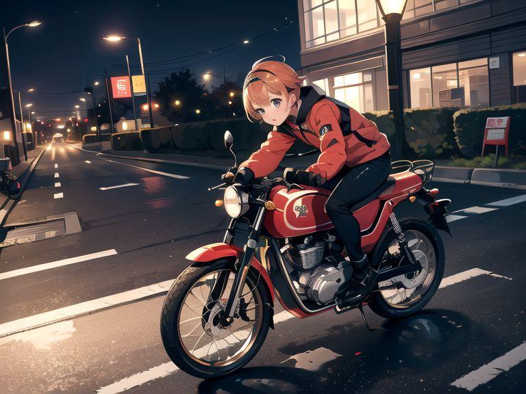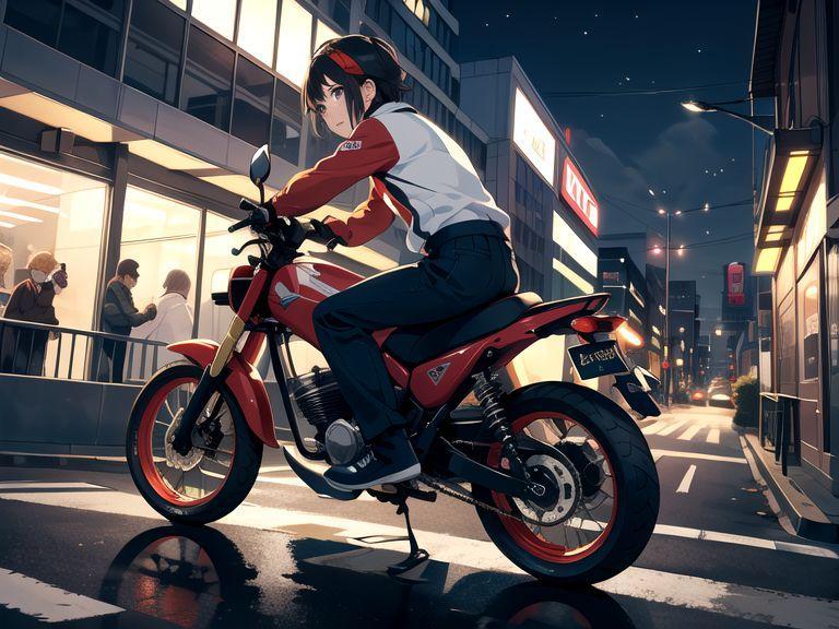 二台のバイクが並び、バトルが始まる…リクの原付きがただの原付きではないとも知らずに……