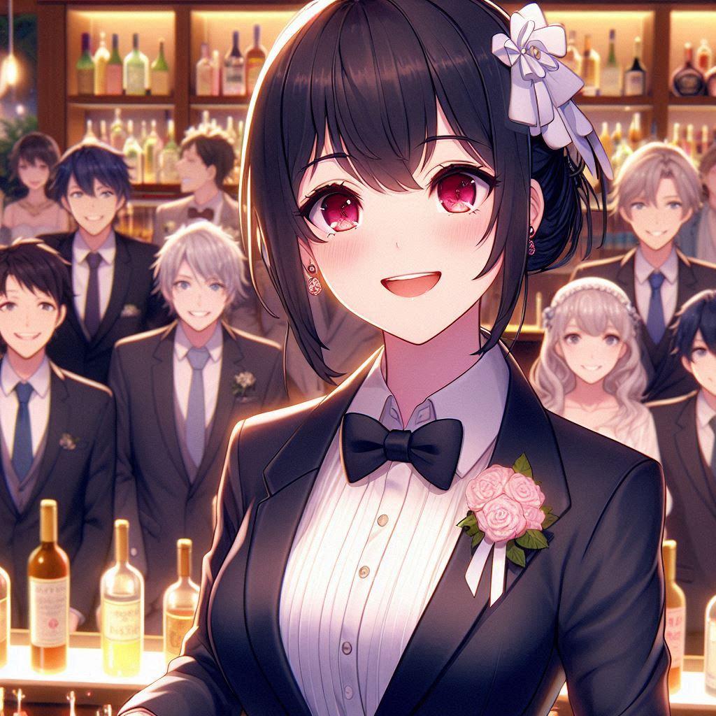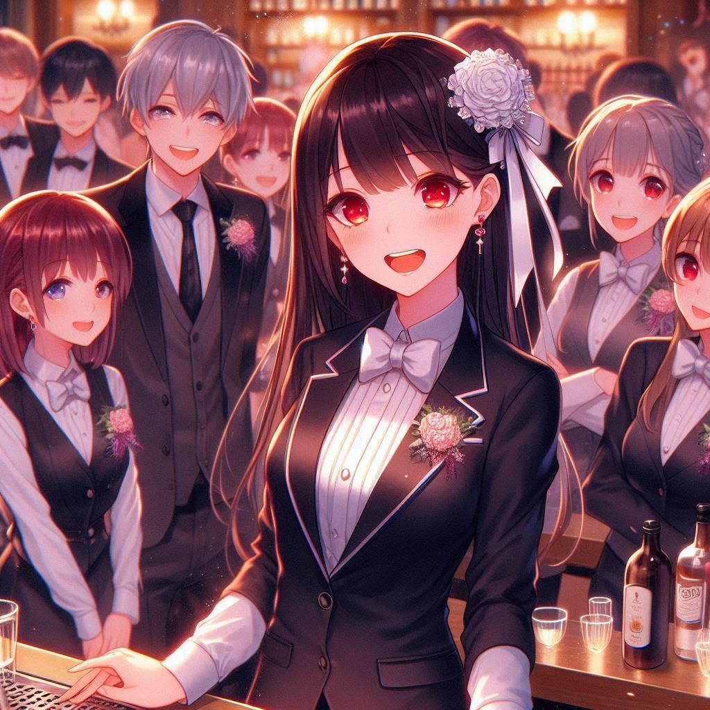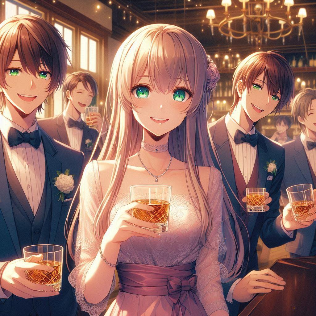 二次会を描写するプロンプトに文字数を取られたため、いつもとタッチが違う感じになりましたが、これはこれで良いですね。