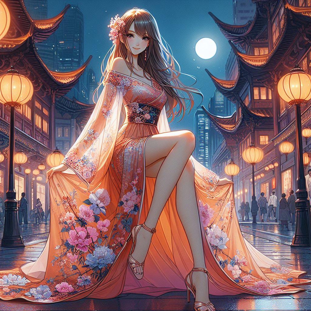 ※チャイナドレスをイメージしたプロンプトでしたが間違えて chipao と入力してしまいました。正しくは qipao (旗袍) です。