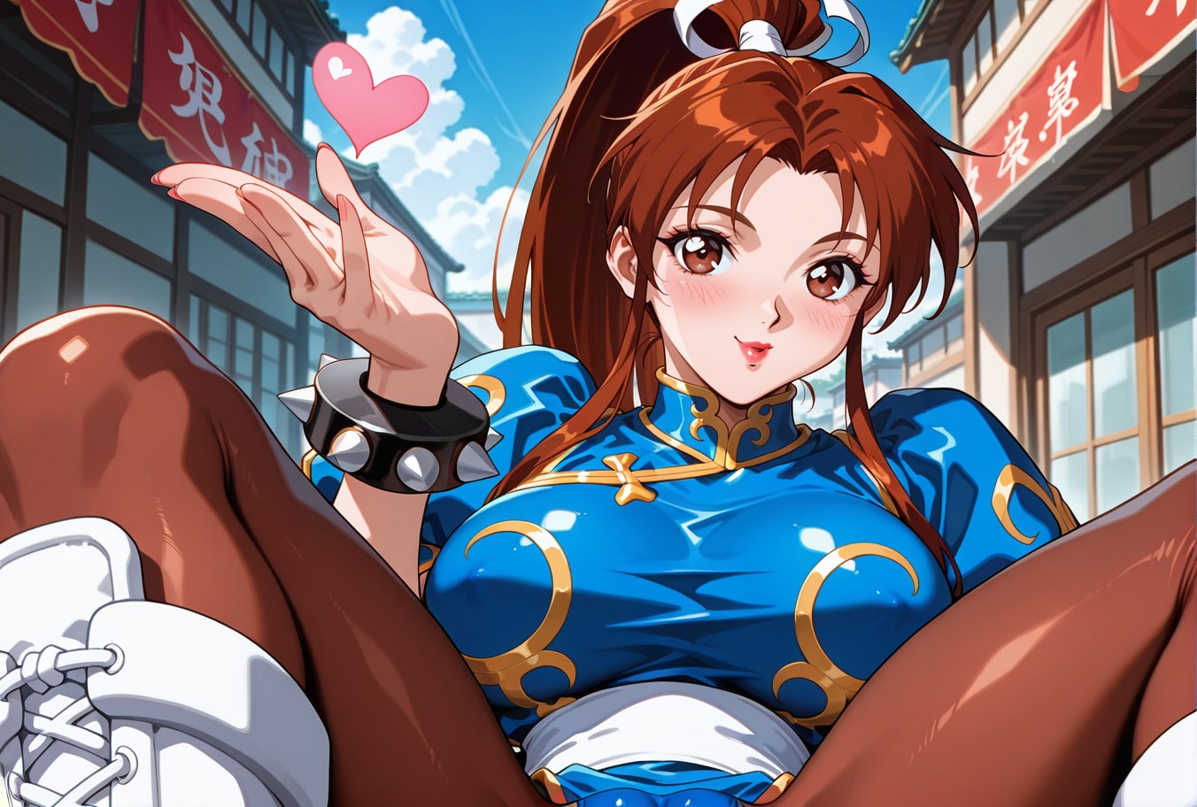 昨日3月1日は春麗パイセンの誕生日だったので、今回は先ほど投稿した五月ちゃん同様、春麗コスプレをした舞ちゃんのイラストを作成してみました。春麗パイセン自体のイラストはアップしないので、ご容赦ください。すいませんw最近投げキッスをさせるイラストに僕はハマっているのかもしれません。。。