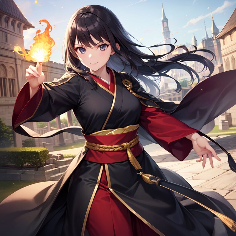 和風衣装の炎の魔法使い