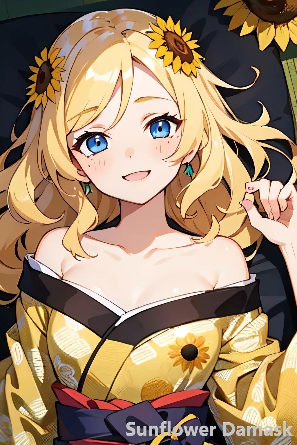 ③Sunflower Damask(ヒマワリ+ダマスク)