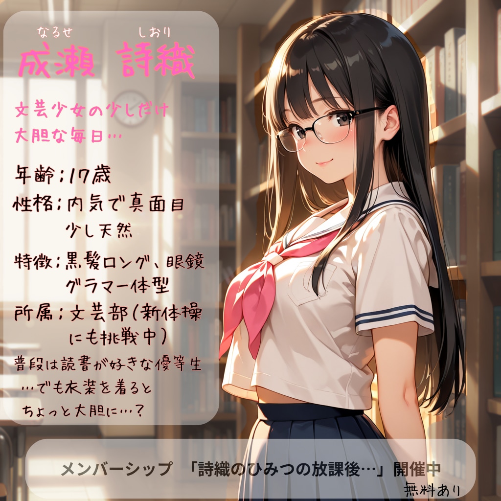 黒髪ロング・眼鏡がトレードマークの文芸少女。