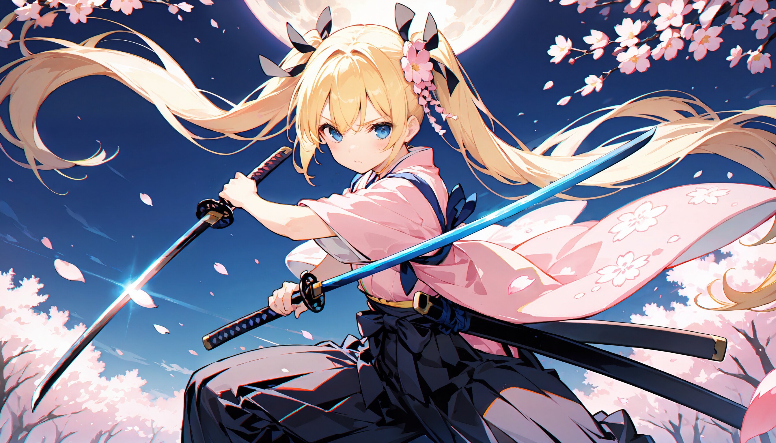 和と言ったら刀。和服やかんざし、夜桜も入れました!