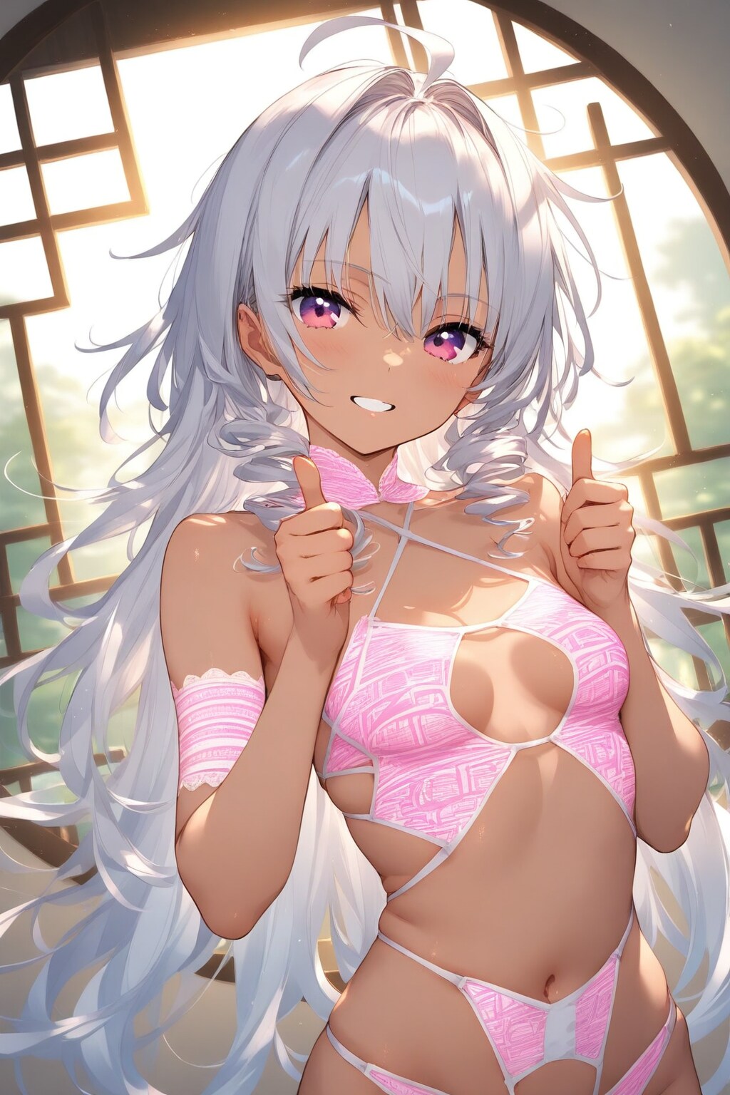 全ては3日に投稿した「天使のモノキニ②」で生成した光る水着を再現する為(*^^*)