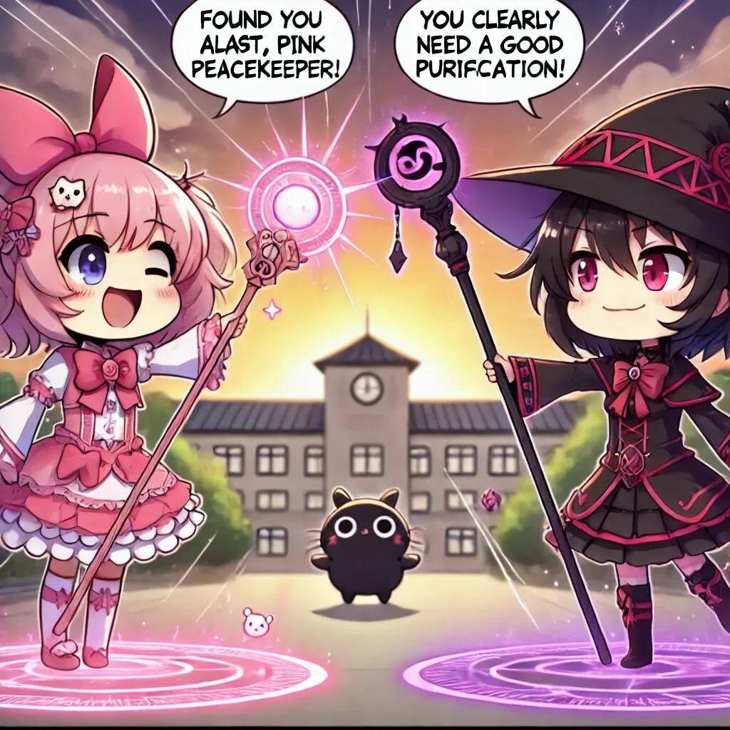 🗨️くろほうマジカ「やっと見つけたわ、ピンクの平和主義者。」