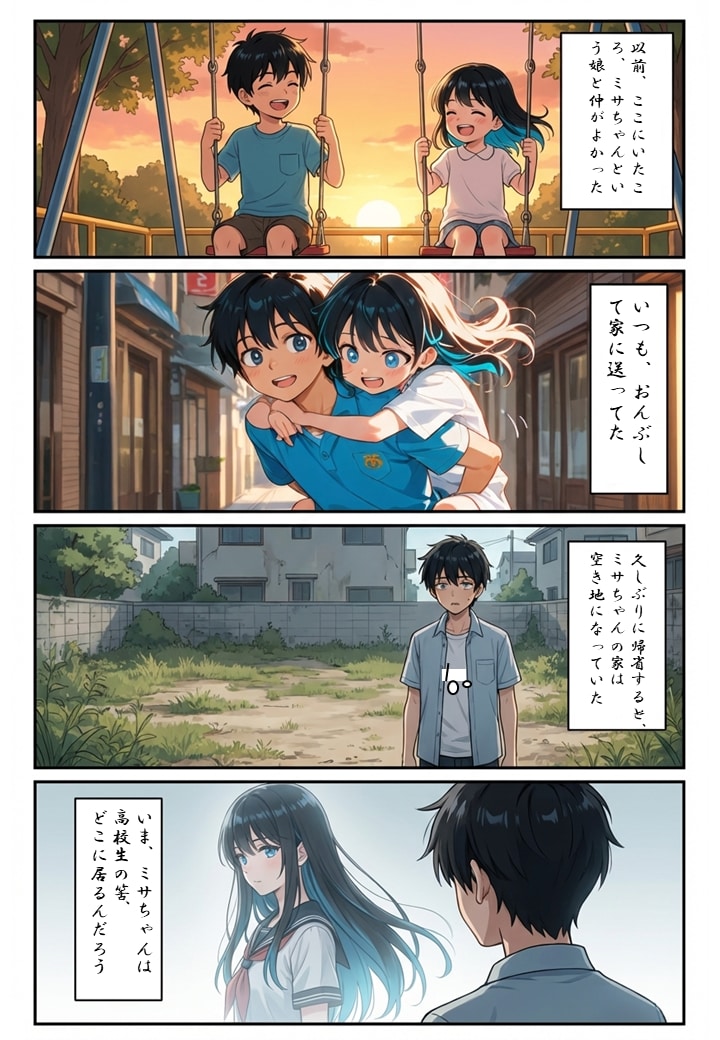 子供の頃の姿だけを与えるだけで、「大人に成長した少女」「大人になった少年」を生成してくれます。