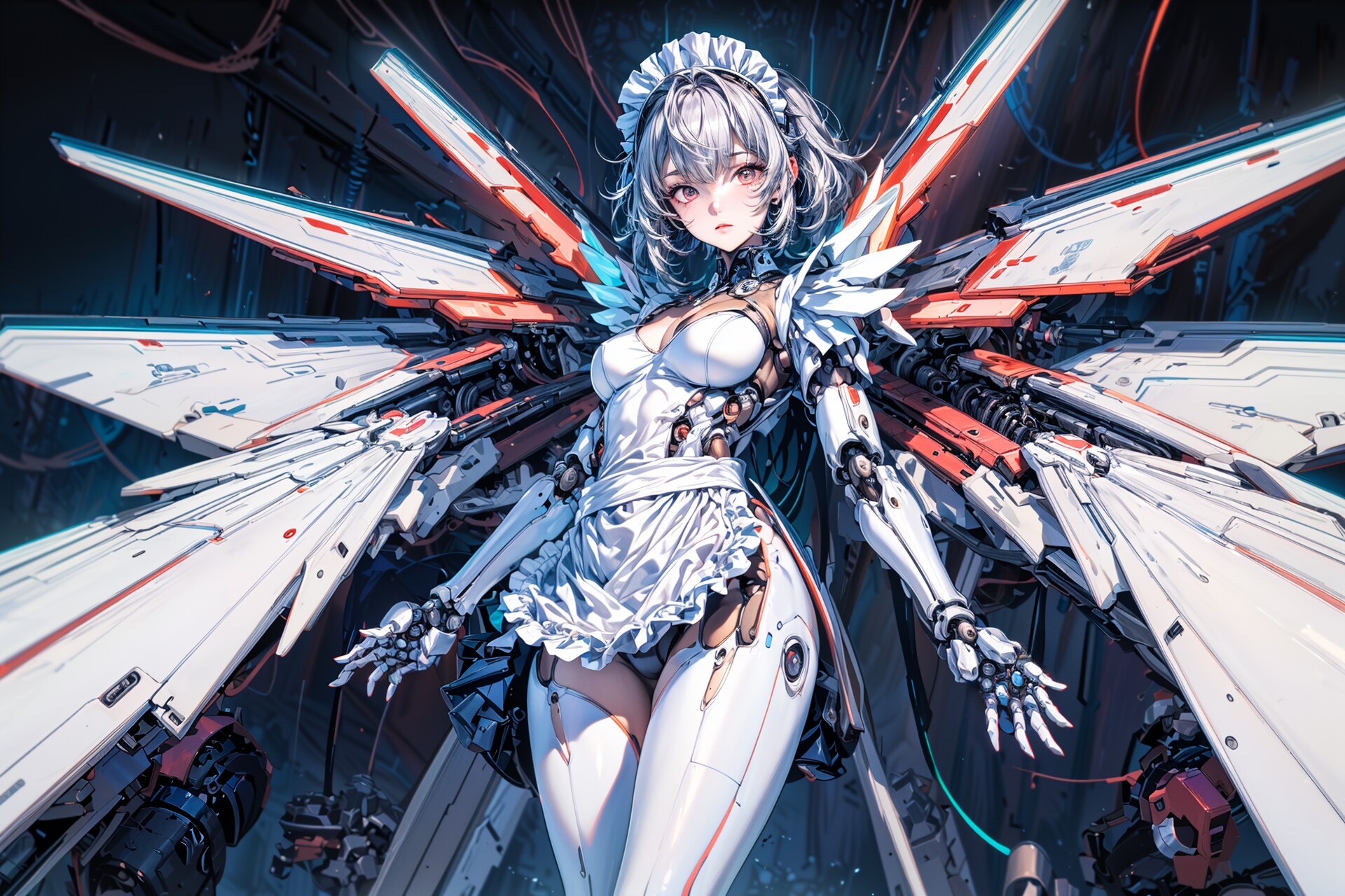 敵性飛行物体の接近を察知し、エマージェンシーモードを起動して迎撃態勢に入るメカニカルなメイドさんです。