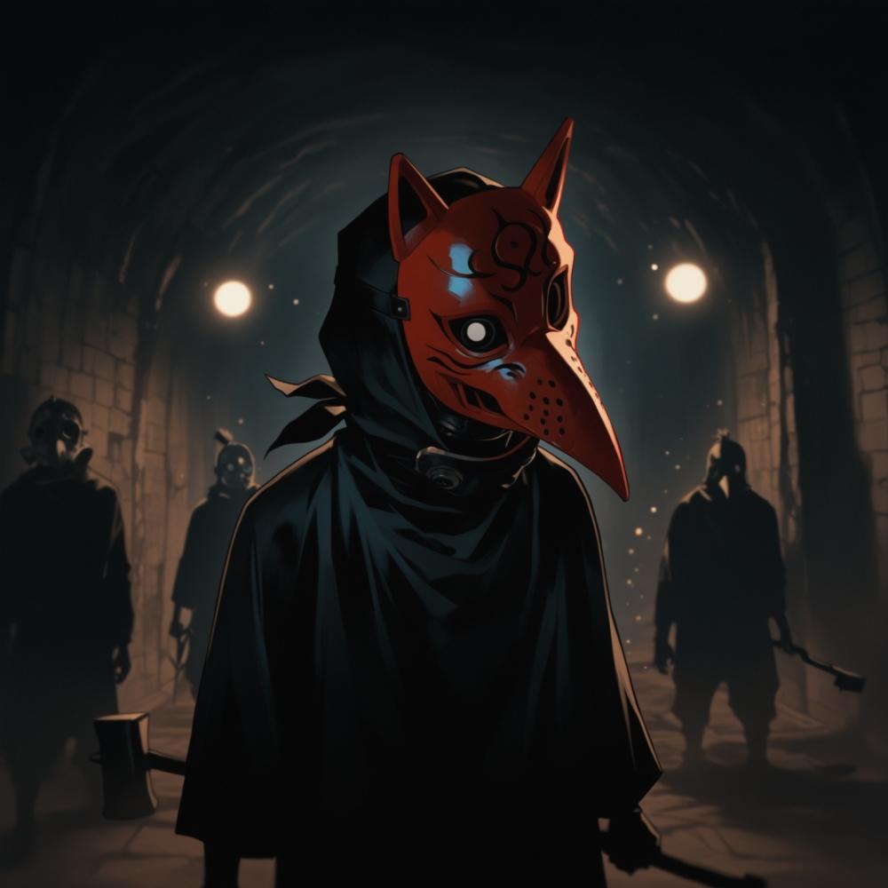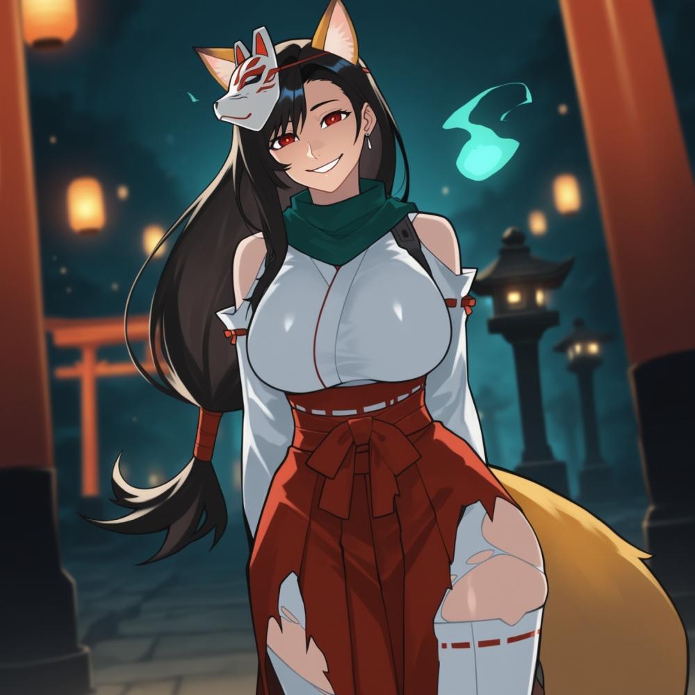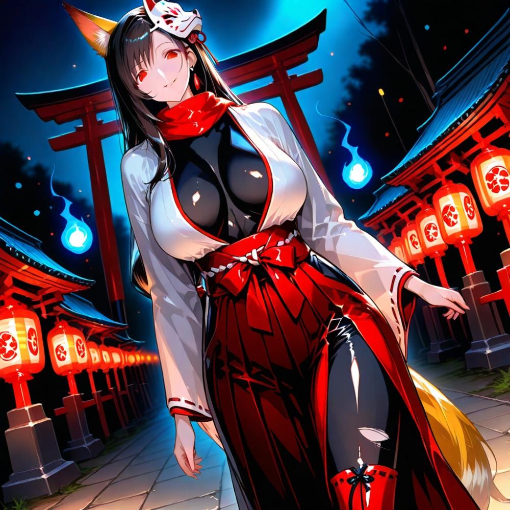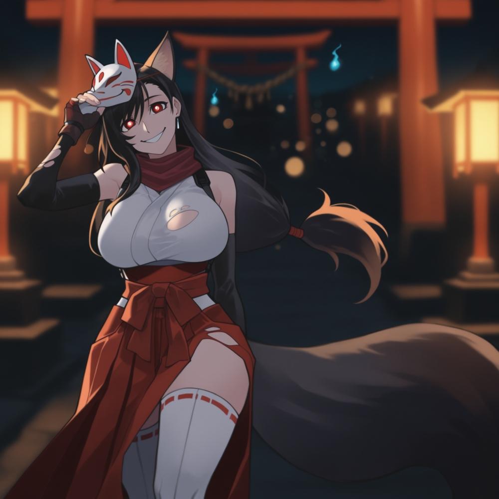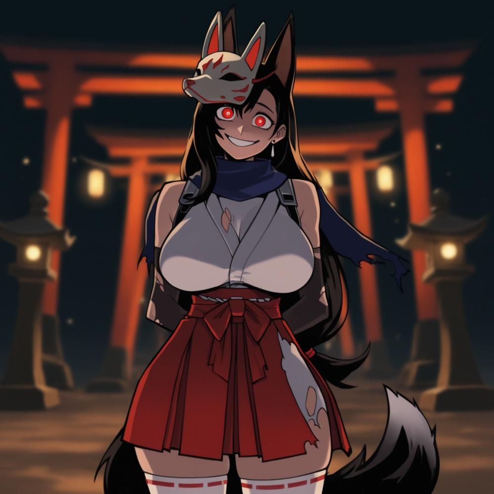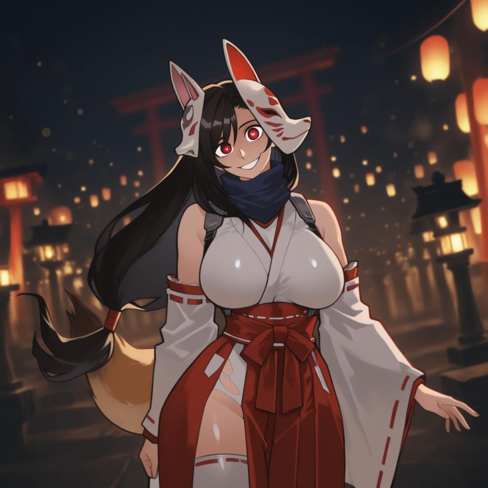 アニメアクリルホラー風夜の神社狐面巫女抜け忍人妻&地下のマスクキラー