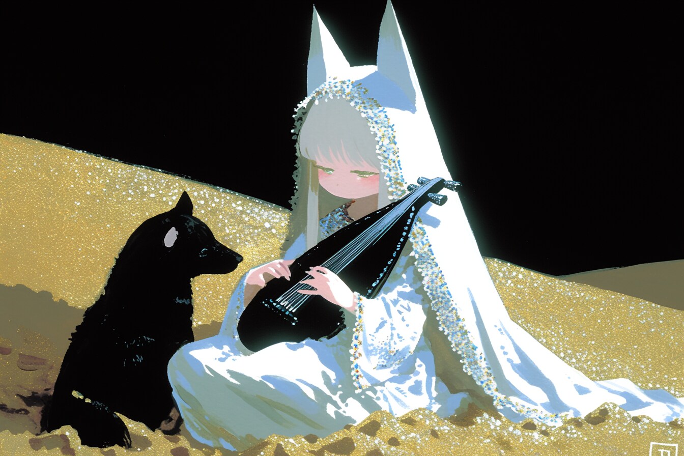 ⇨お題ガチャから。砂漠の民×竪琴×黒い犬×星屑だったかな。これも題材が良くてたくさん作った✌
