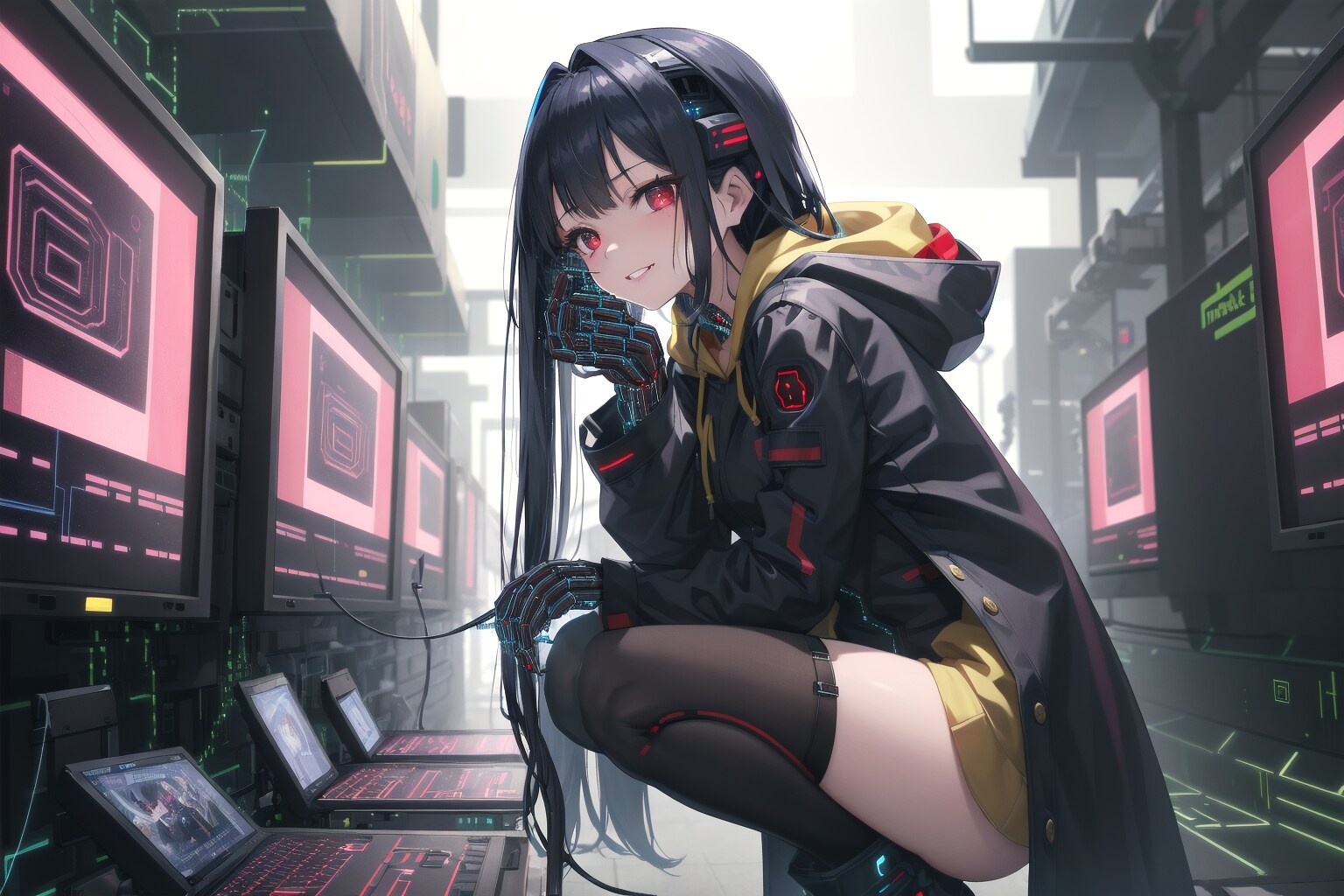 電脳グローブをつけた「彼女」がひらひらと手を振る。