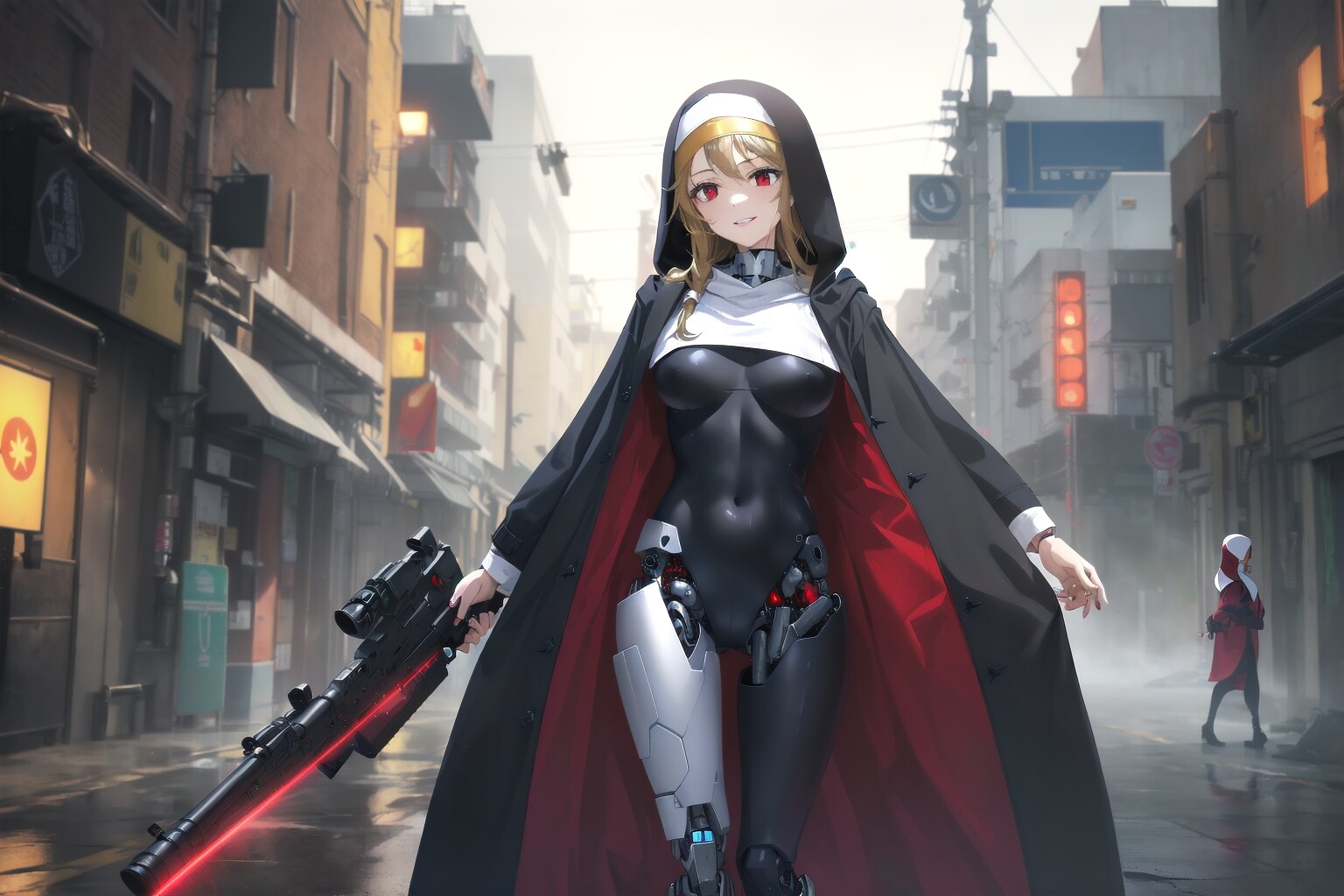 ご機嫌で電子部品の買い物を済ませた彼女を待ち受けていたのは「オオスカノン」の機械化戦闘尼僧(mechanized combat NUN)だった。