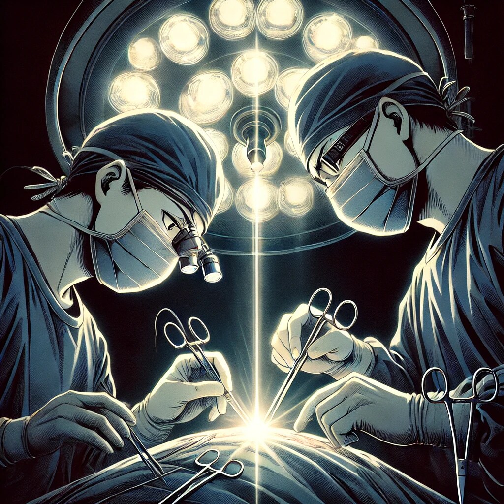 左「いや肝臓はもっと右にあるやろ。とにかく血ぃ止めな!!」