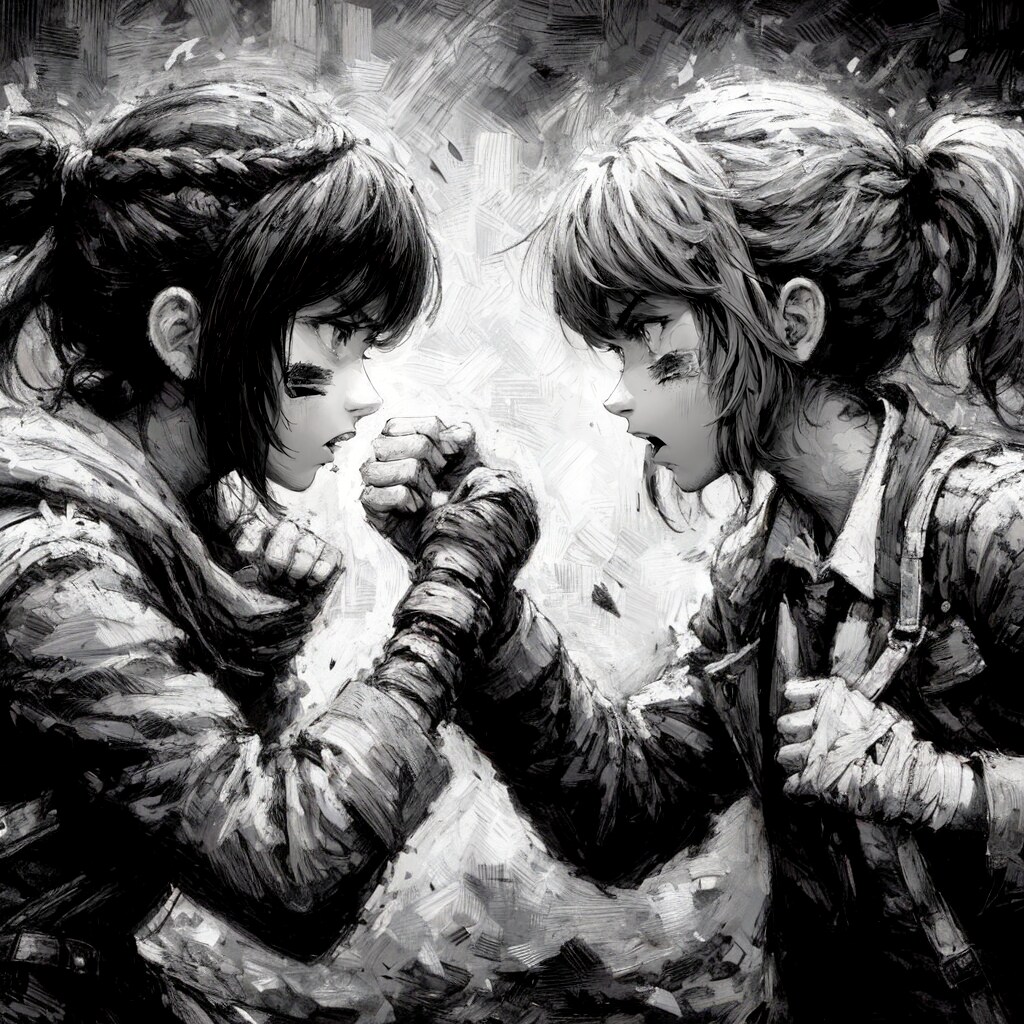 1枚目:喧嘩、2枚目:仲直り、3枚目:DALLE元絵のサイクルを4サイクル。