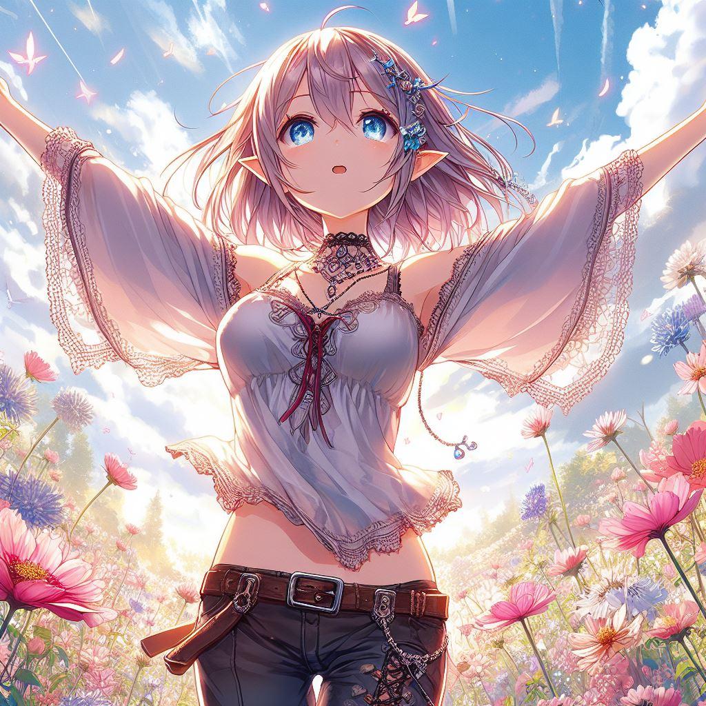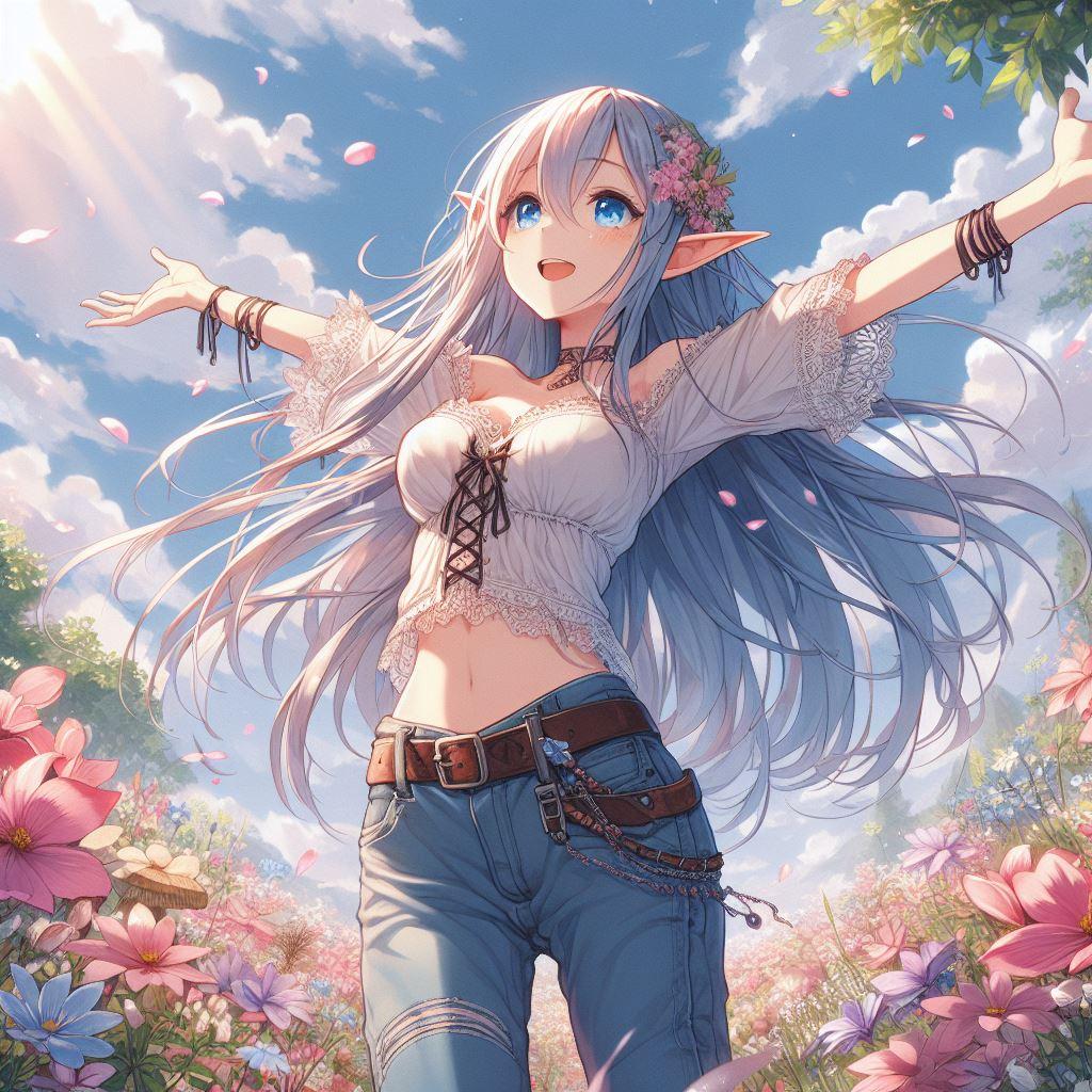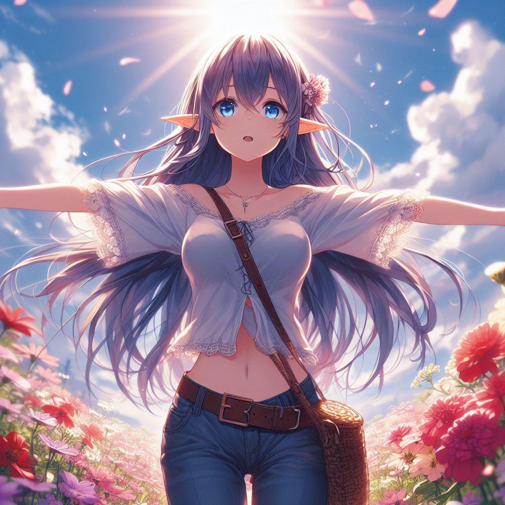 花畑のジーパンエルフ娘