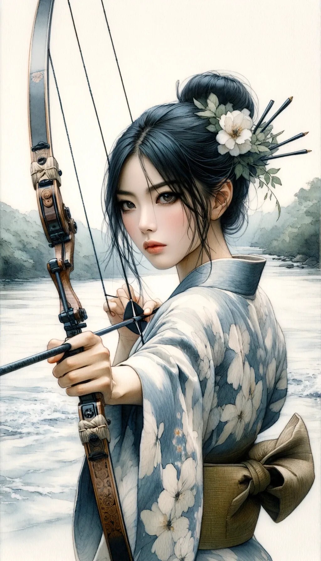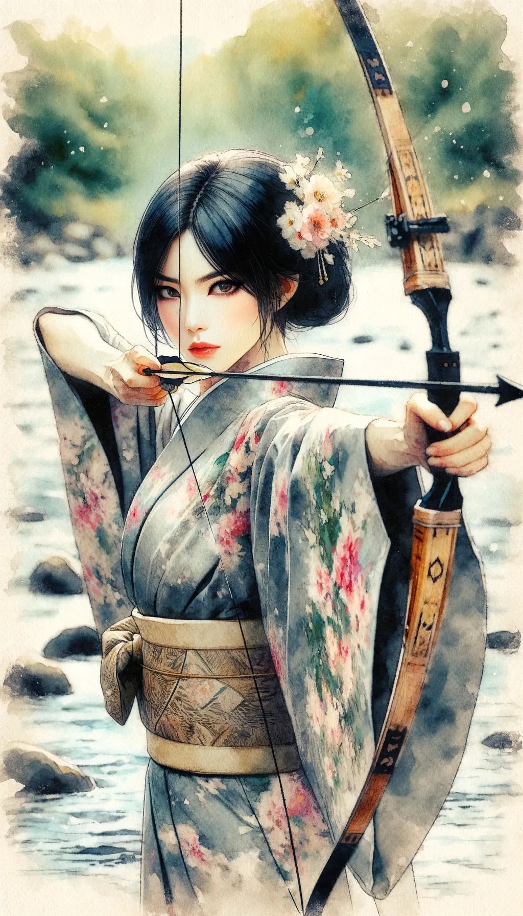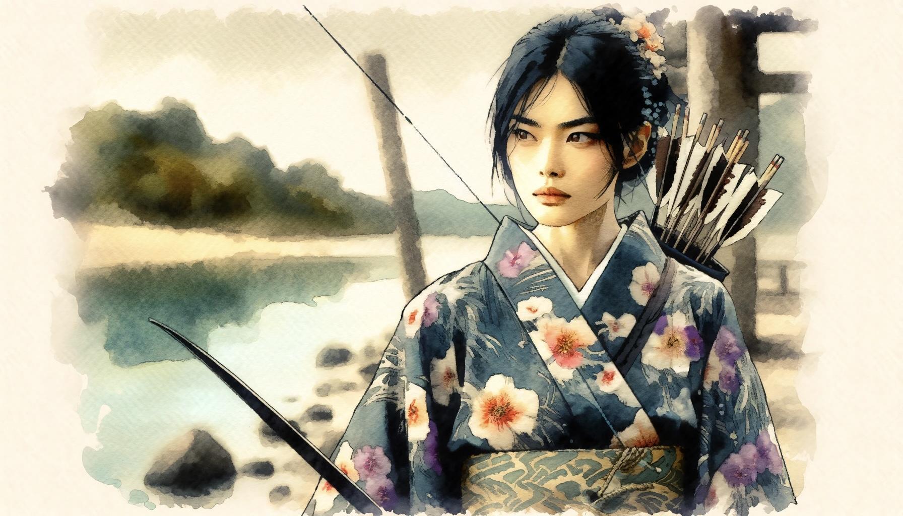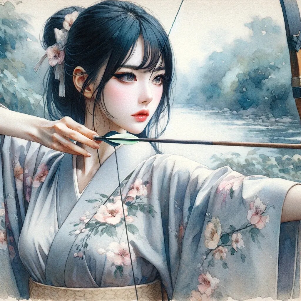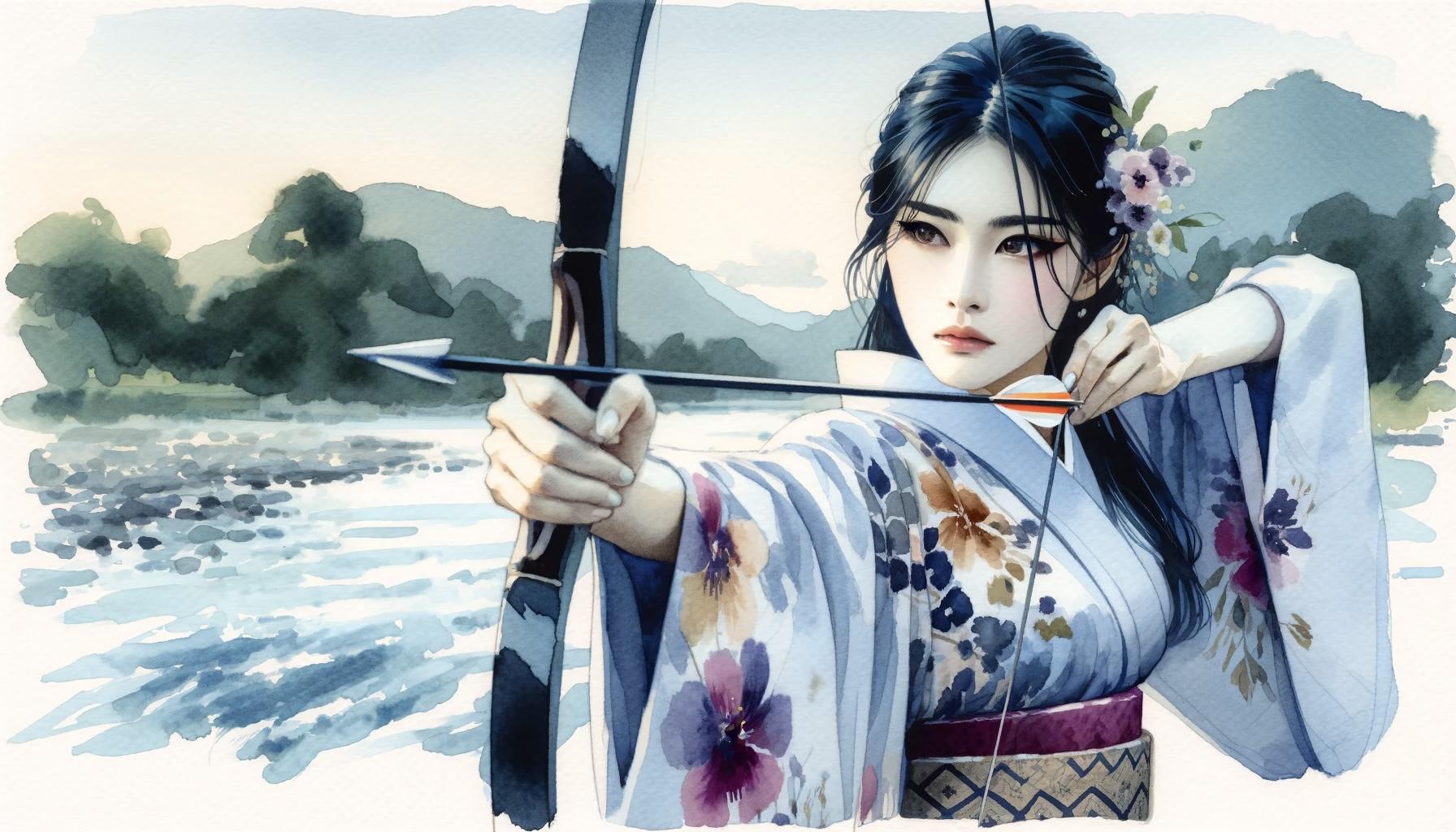 弓を引く女