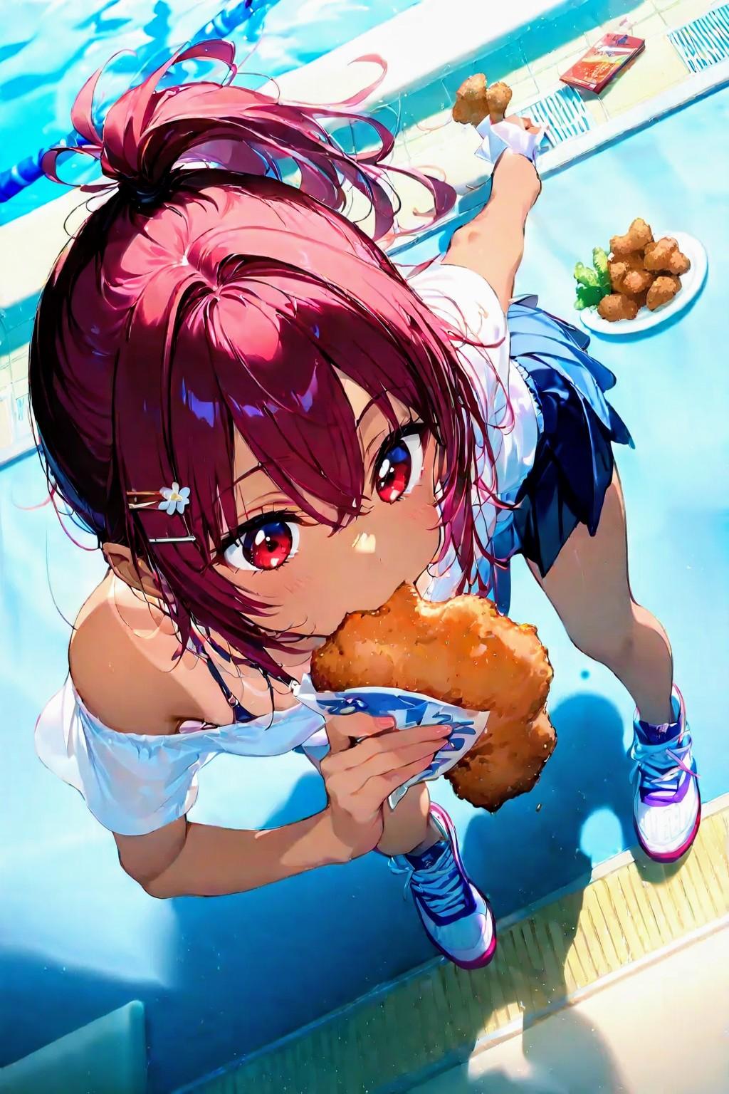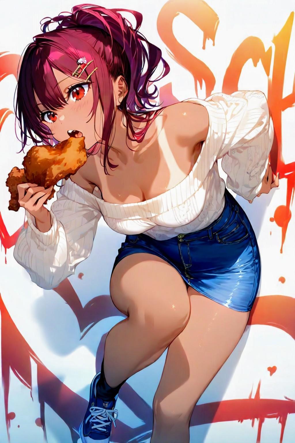 フライドチキン🍗にパクつく、おにくちゃん🍖
