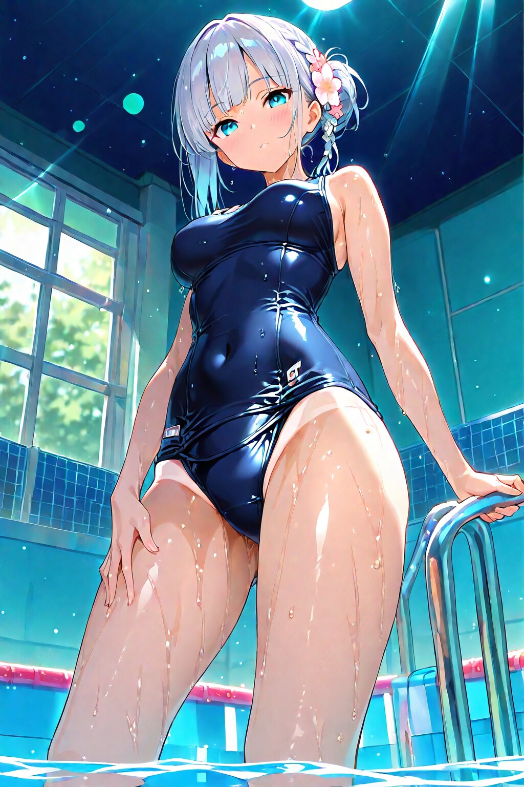 ちなみに背景(プロンプトの設定は学校のプールです❗)は夜の学校のプールなんですが、一般開放もしてて誰でも利用出来る場所です❗