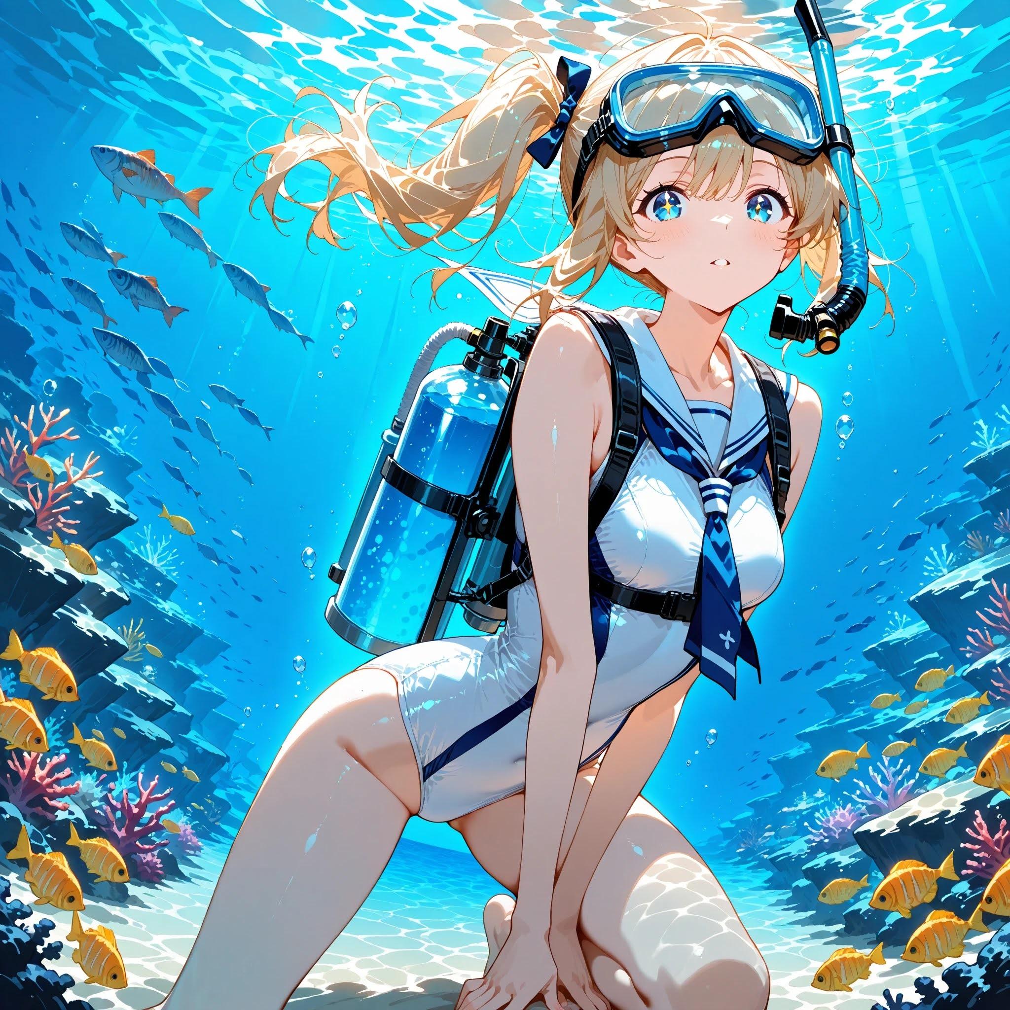 セーラースク水のスキューバーダイバー