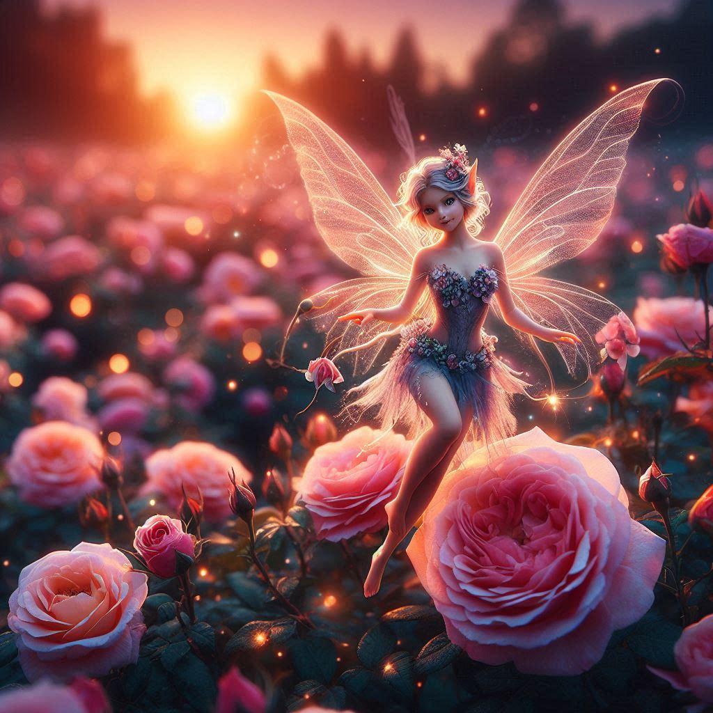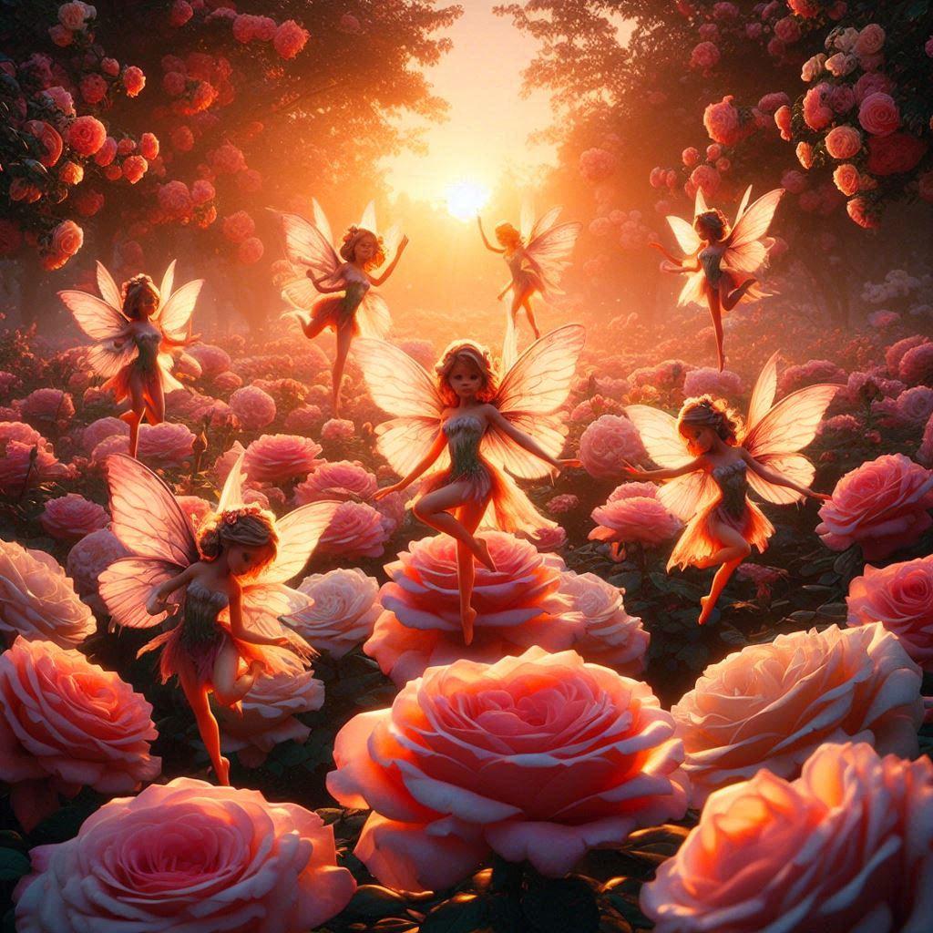 バラ園で優雅に舞う精霊