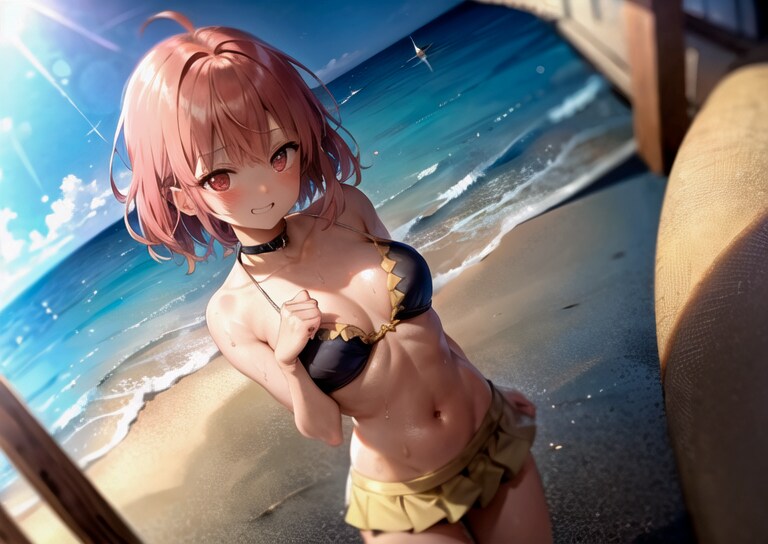 『これが海…水がいっぱいある!けど、塩っぱいな。水着ってのを初めて着てみたけど、なんだか恥ずかしいな』