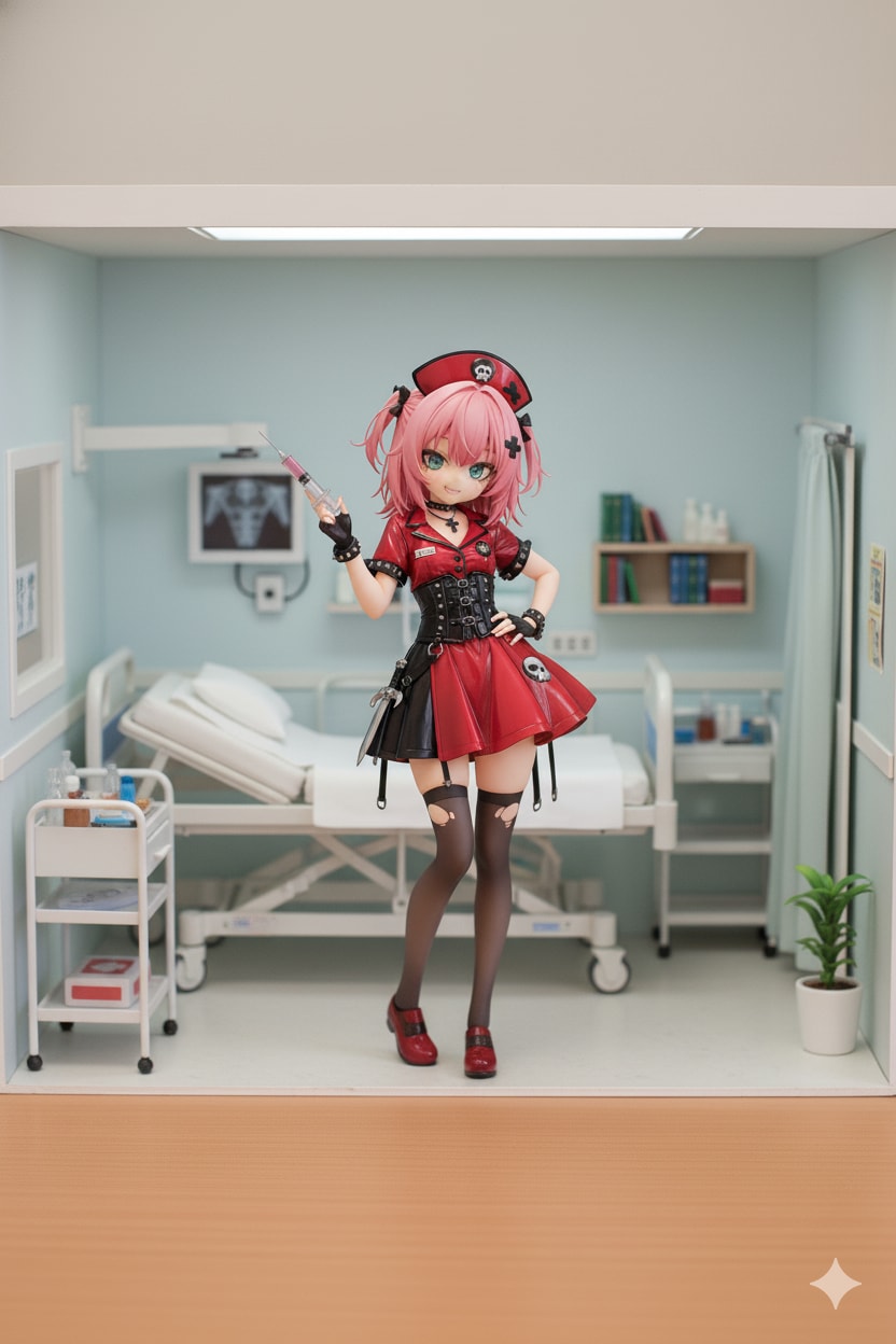 ChatGPTさん曰く、「黒×白のコントラストでモードな医療スタイル。」だそうです(赤い、赤いよ)。