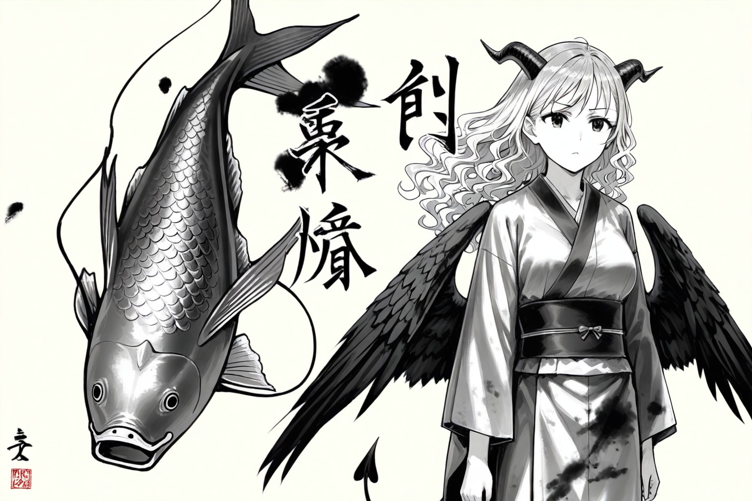まみむめもさん主催の「水墨画」企画投稿用イラストです。