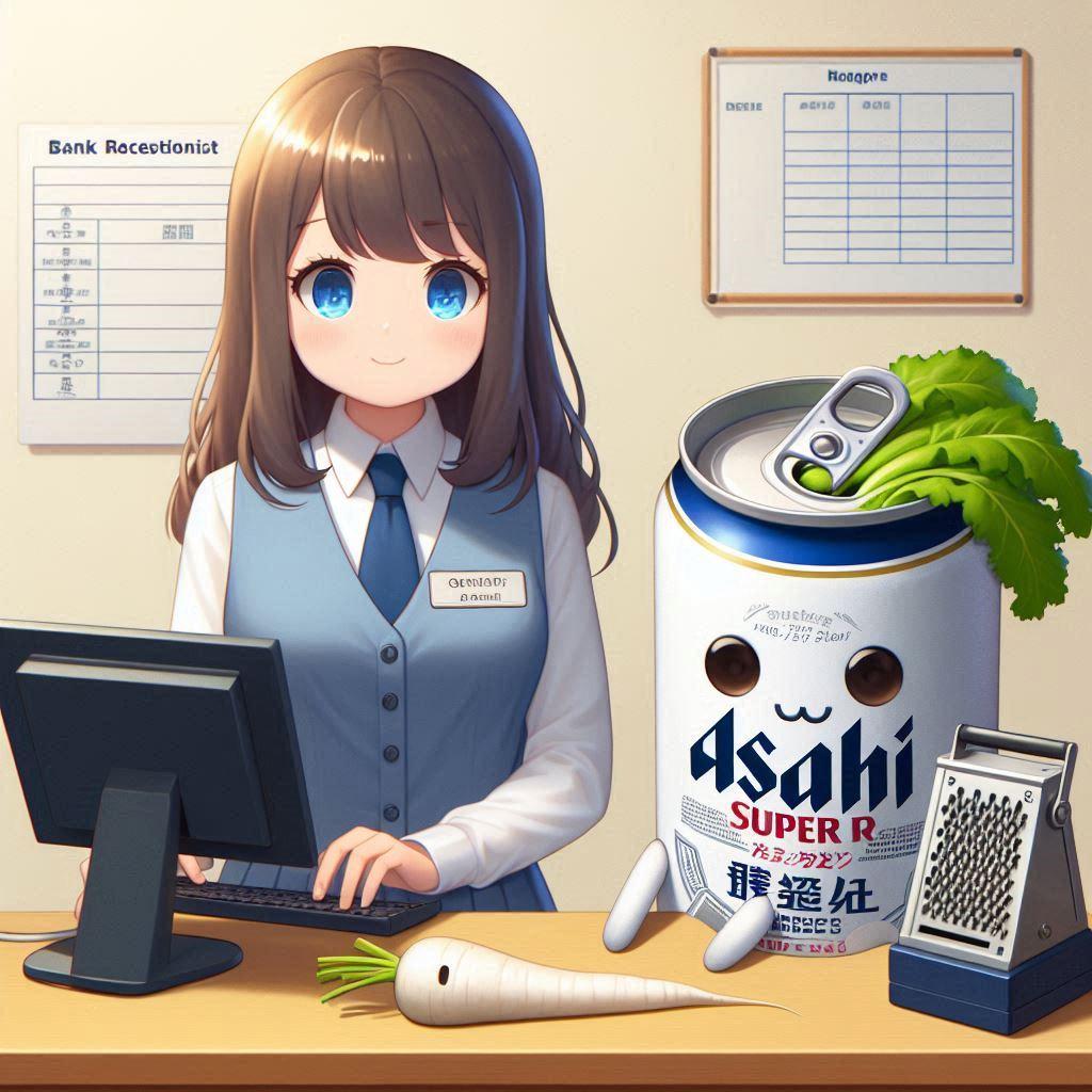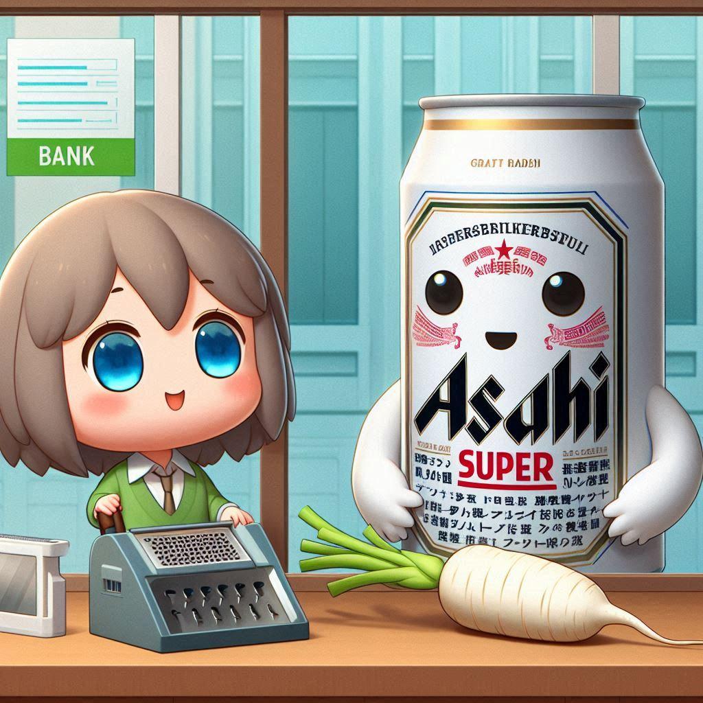 銀行でたくさんおろそうとしているビールと小さな女の子