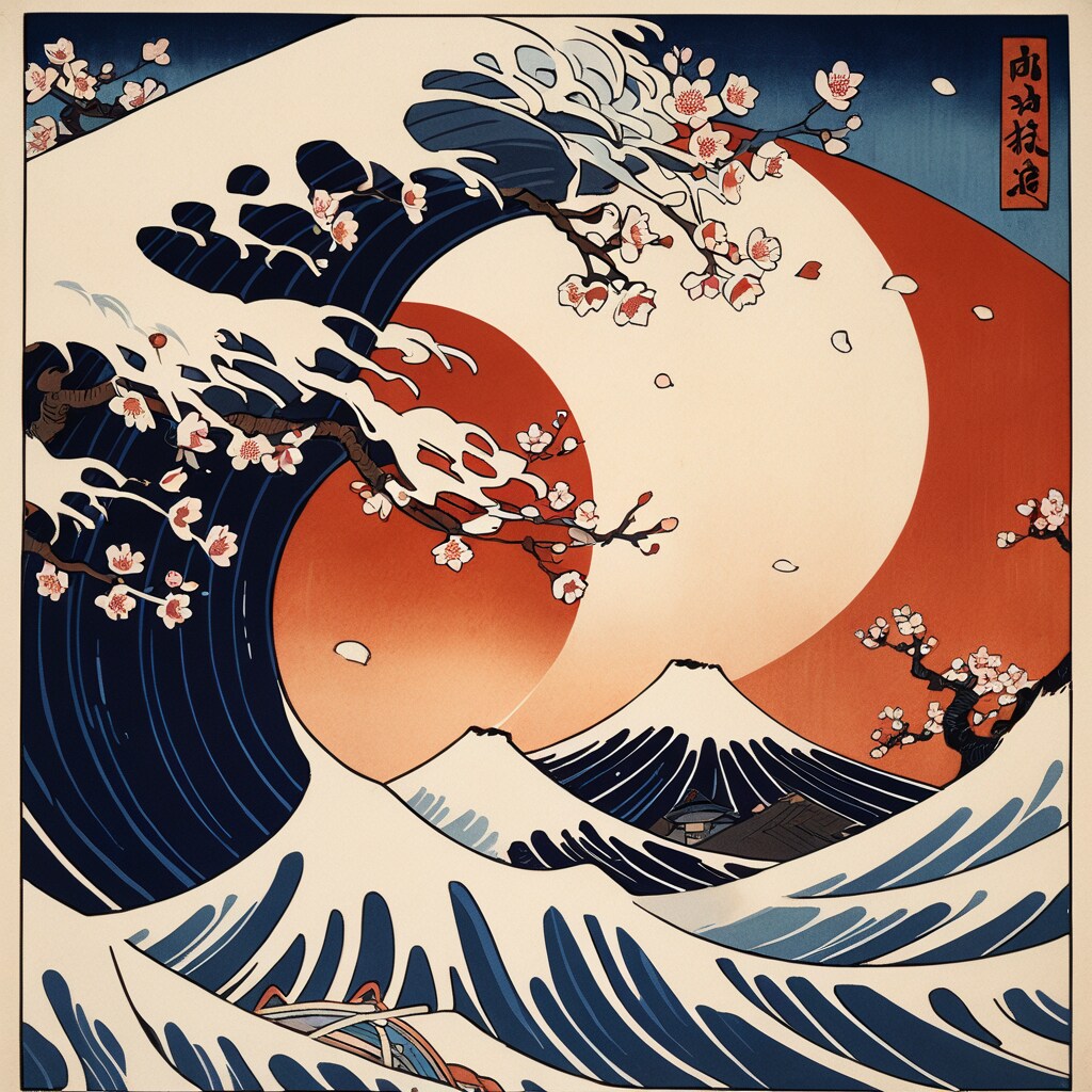 2枚目の左上に浮世絵の可能性を見せてくれてますが、生成ポイント切れちゃいました。