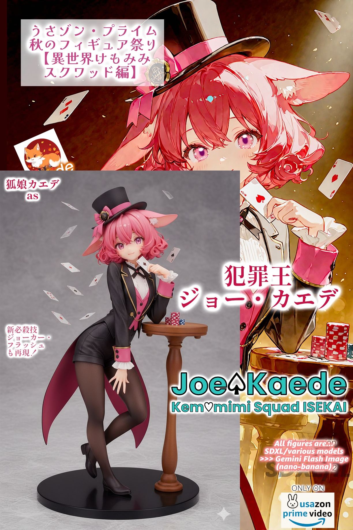 ●1枚目:仕込みトランプで必殺技を持つ、街の犯罪王(自称)ジョー・カエデ (演者:狐娘カエデ) 元ネタ:ジョーカー