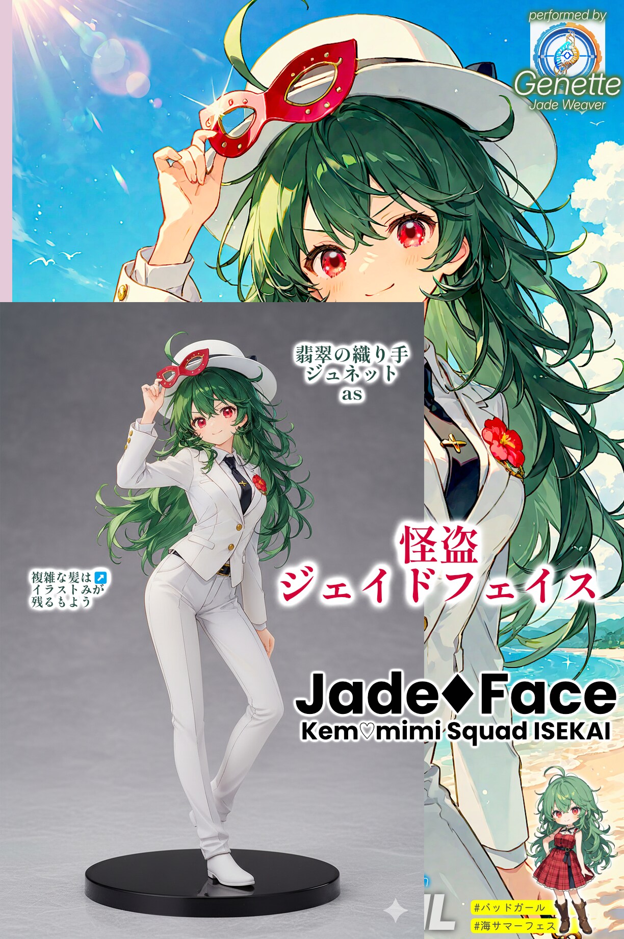 ●5枚目:白スーツで決めた男装の麗人、怪盗ジェイドフェイス (演者:翡翠の織り手ジュネット) 元ネタ:クレイフェイス