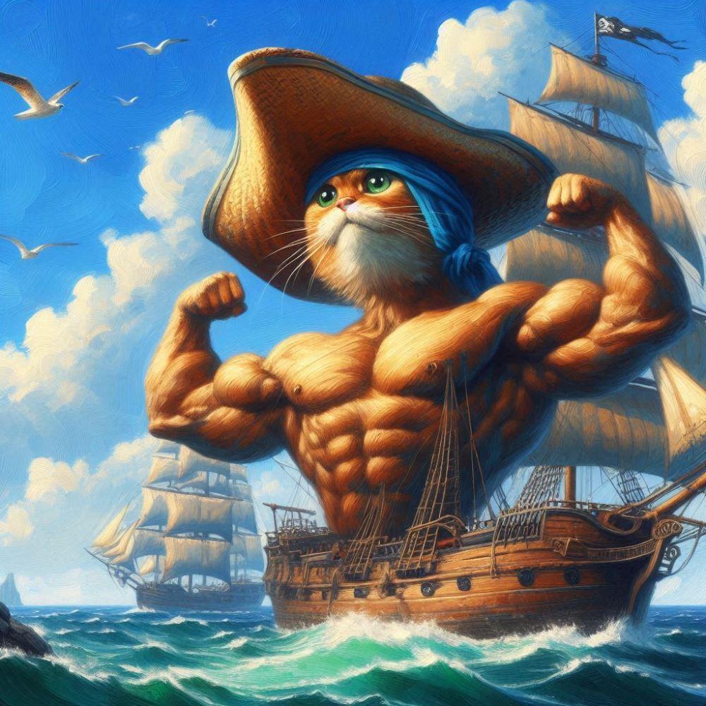 油絵ファンタジー、麦わら帽子海賊筋肉猫