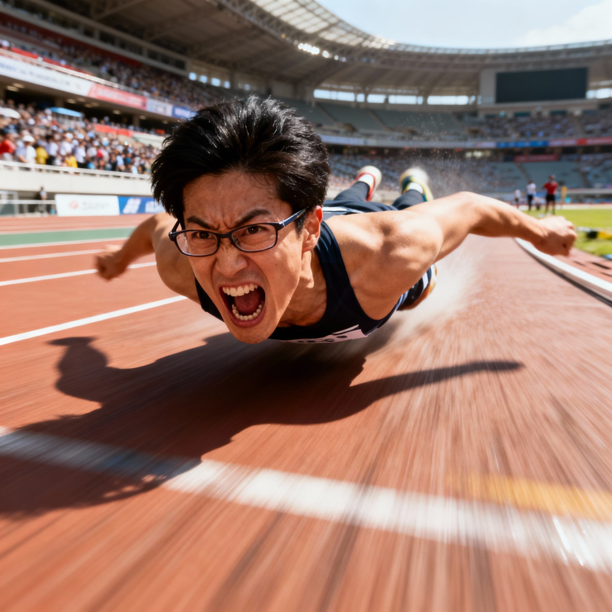 かつて「自分をリニアだと思え。地面は磁石だと思え」と語った世界チャンピオンは厳しい練習を重ねた結果、体内で磁場を発生させて自らを磁力で遠くへ反発させる技を身に着け、本大会では地面からわずか3cmを加速をしながら飛び続け、陸上競技場の壁に激突して棄権したと言われる。