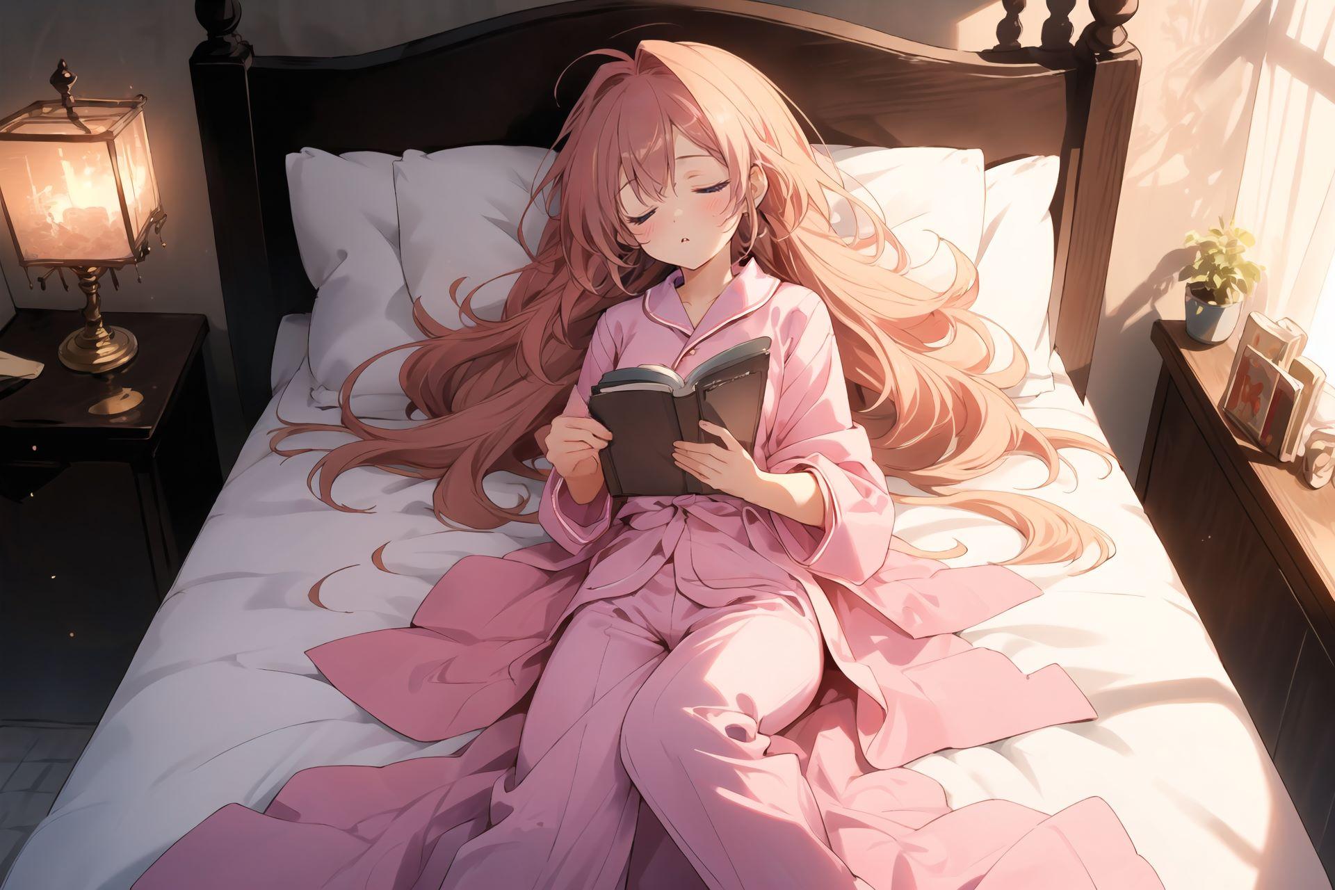 読書しながら寝てしまった少女