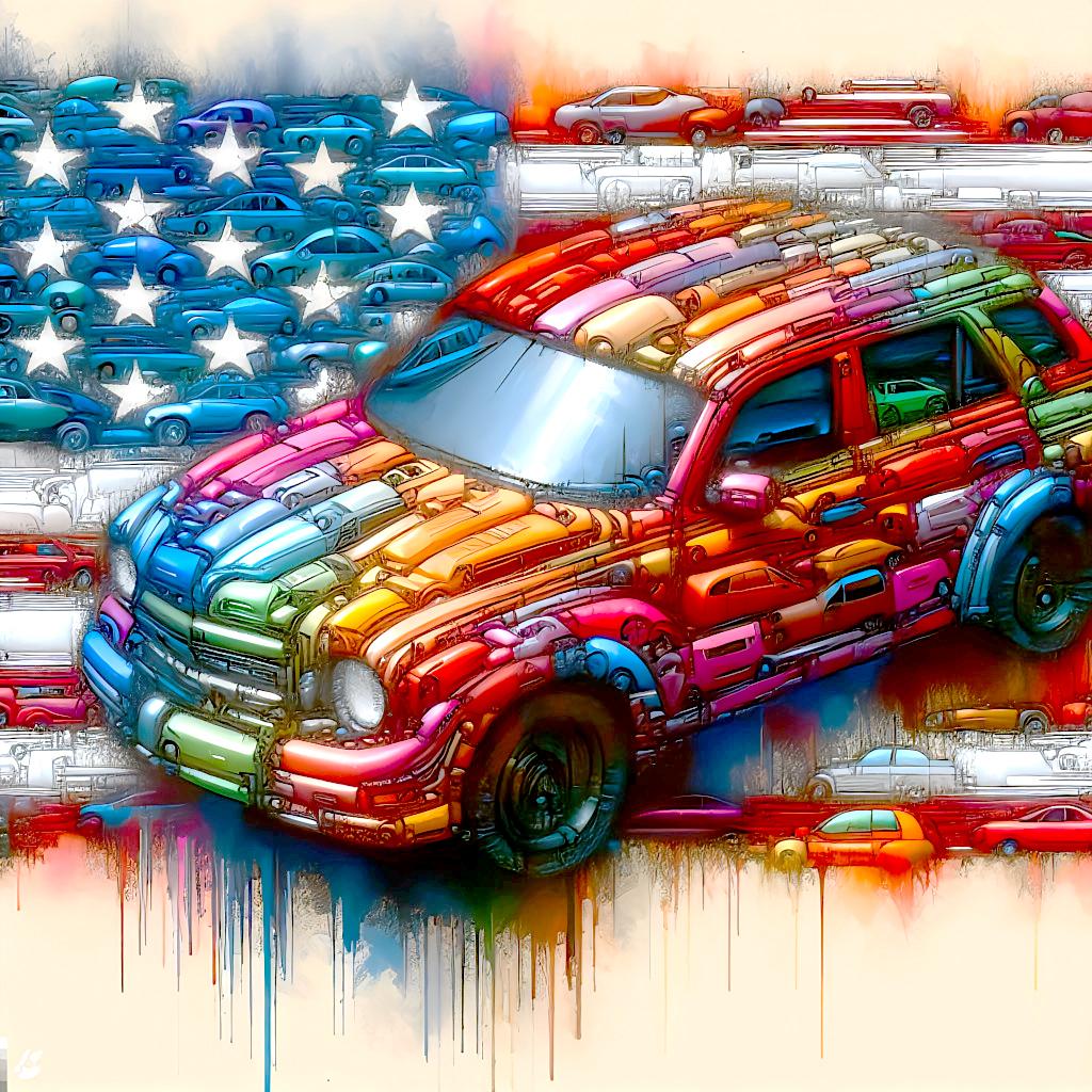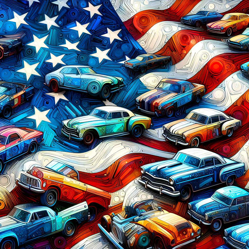 「アメ車と星条旗 AI抽象画投稿企画」が2024年1月20日のデイリーランキング46位(呪文あり)に入りました
