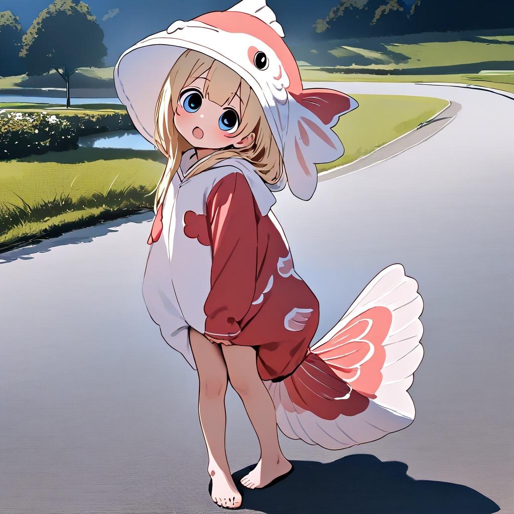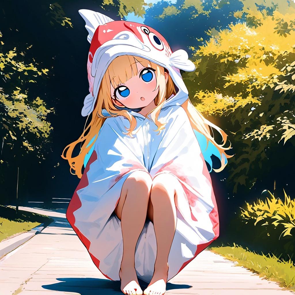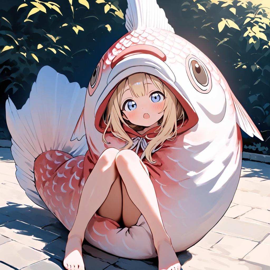 空にはたくさんの鯉のぼりたちが誇らしげに泳ぐ中、鯉のぼりちゃんは、下から見上げてぶるぶる震えていた。