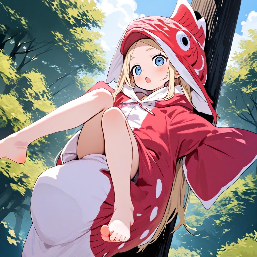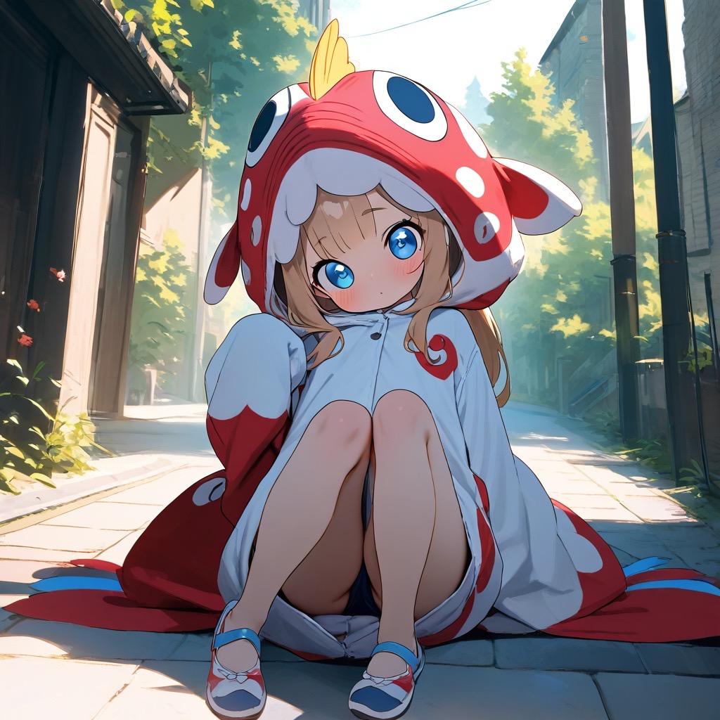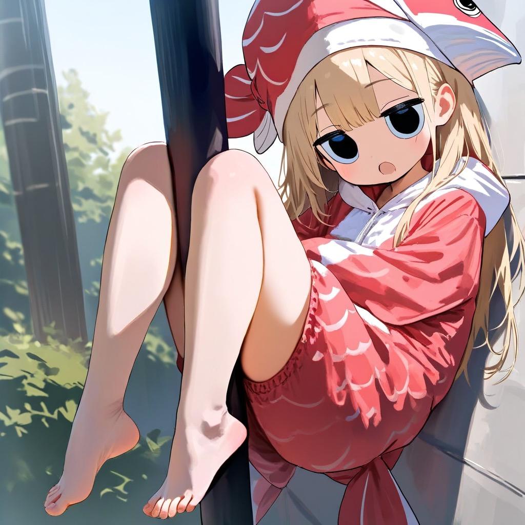 空にはたくさんの鯉のぼりたちが誇らしげに泳ぐ中、鯉のぼりちゃんは、下から見上げてぶるぶる震えていた。