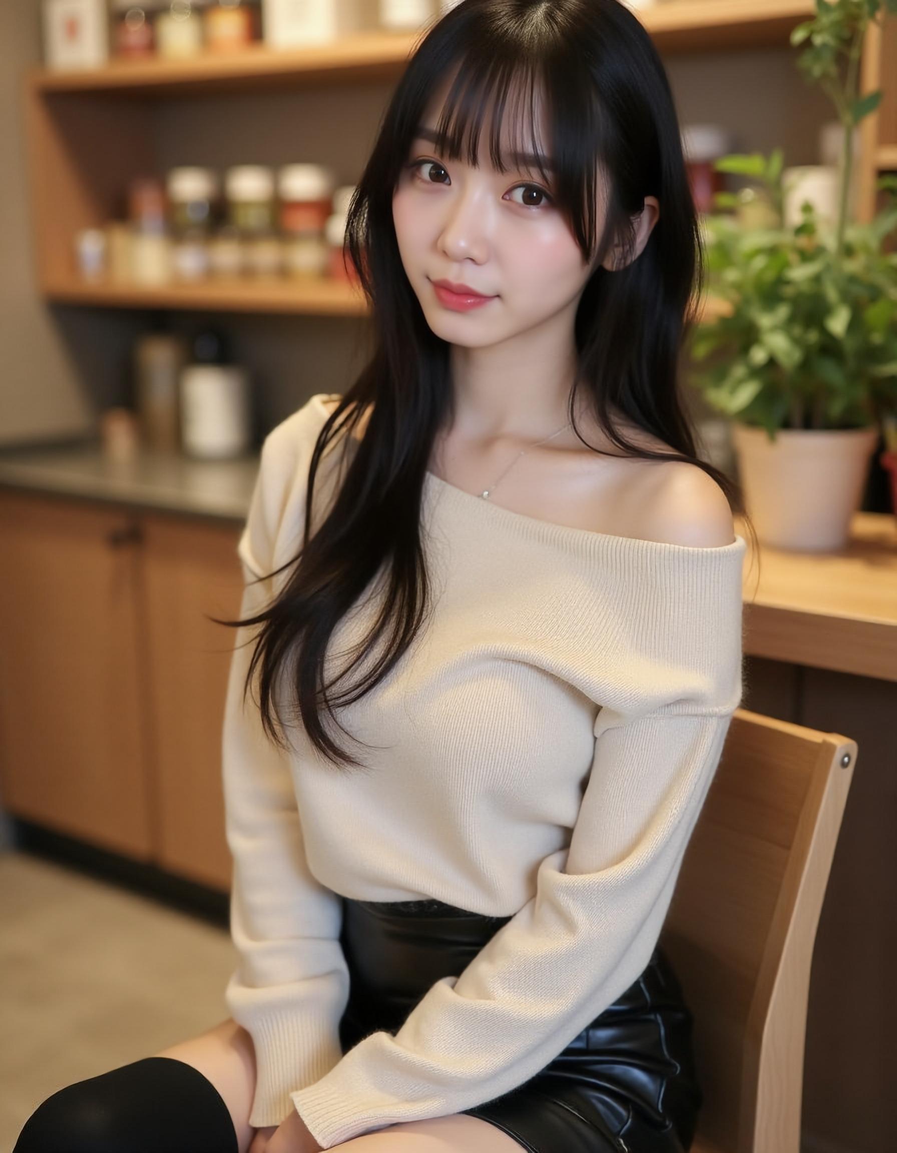 タートルネックセーターとオフショルダーセーターだけプロンプト変えて出した2枚です。