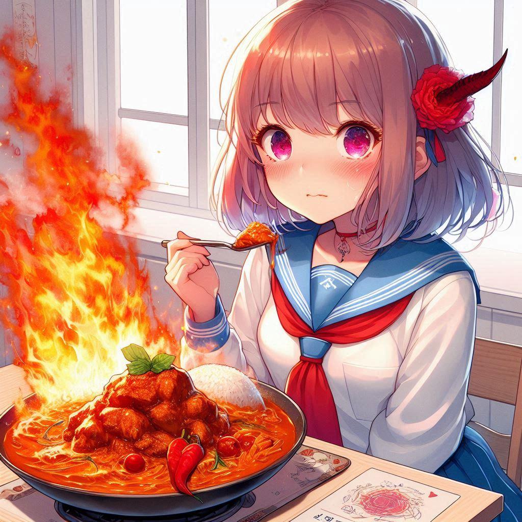 皿から炎が出る激辛料理とのフードファイト