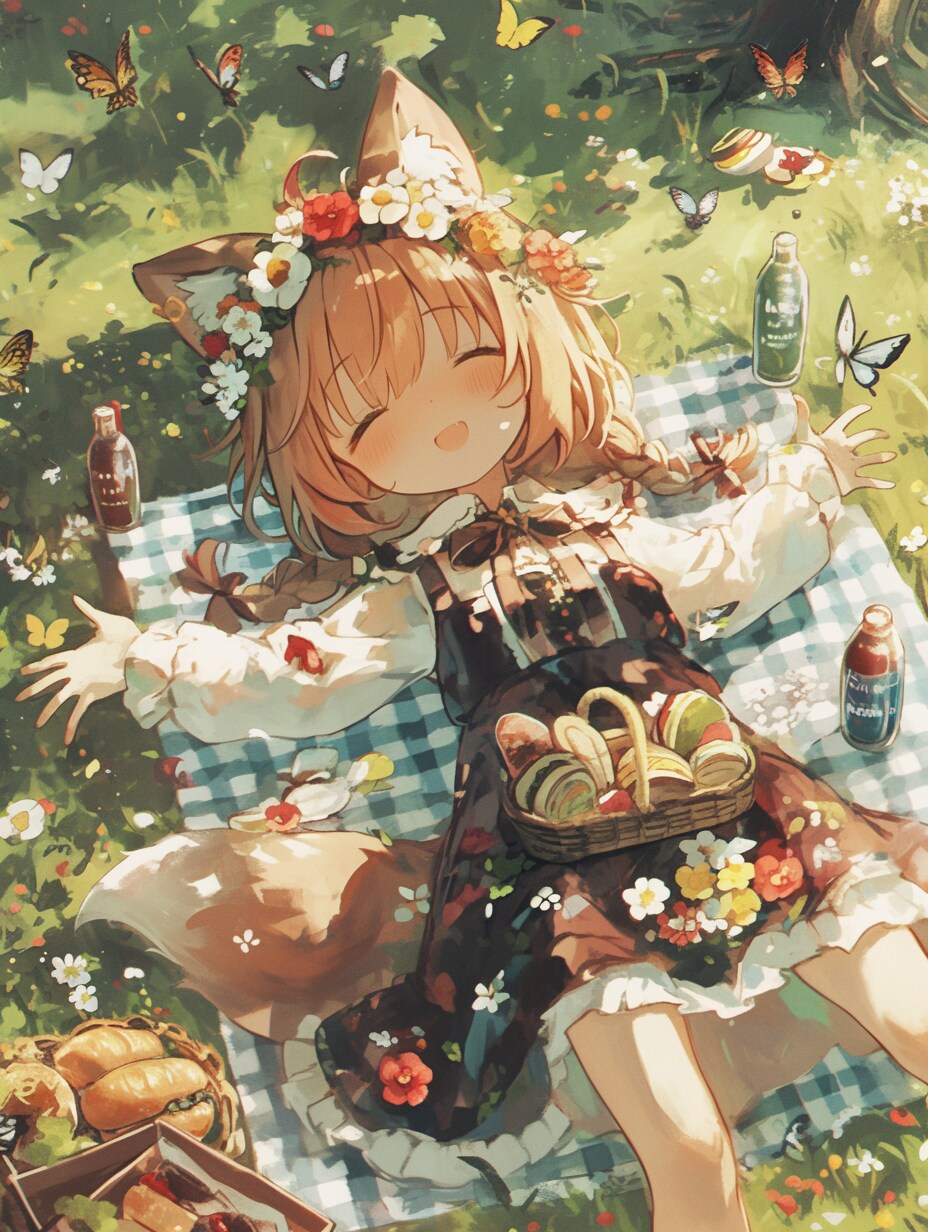 おひさまの下で、くま娘のお昼寝タイム🐾
