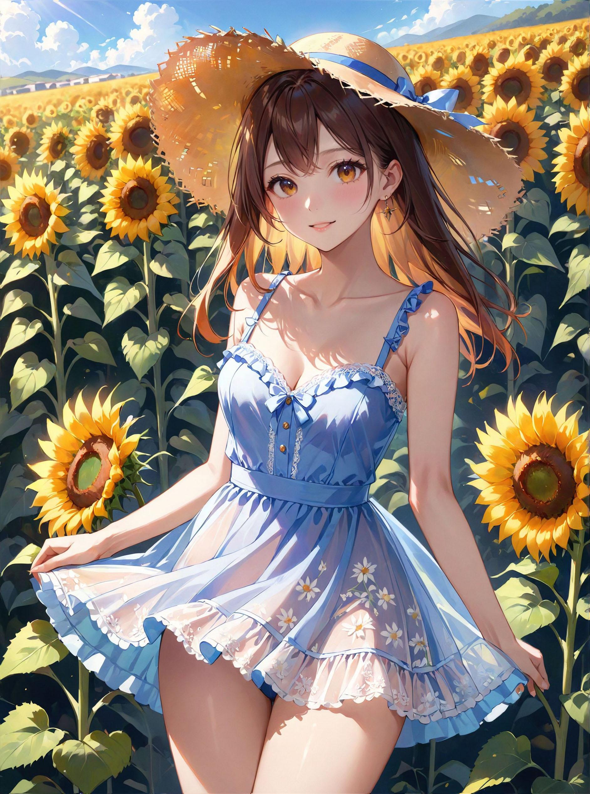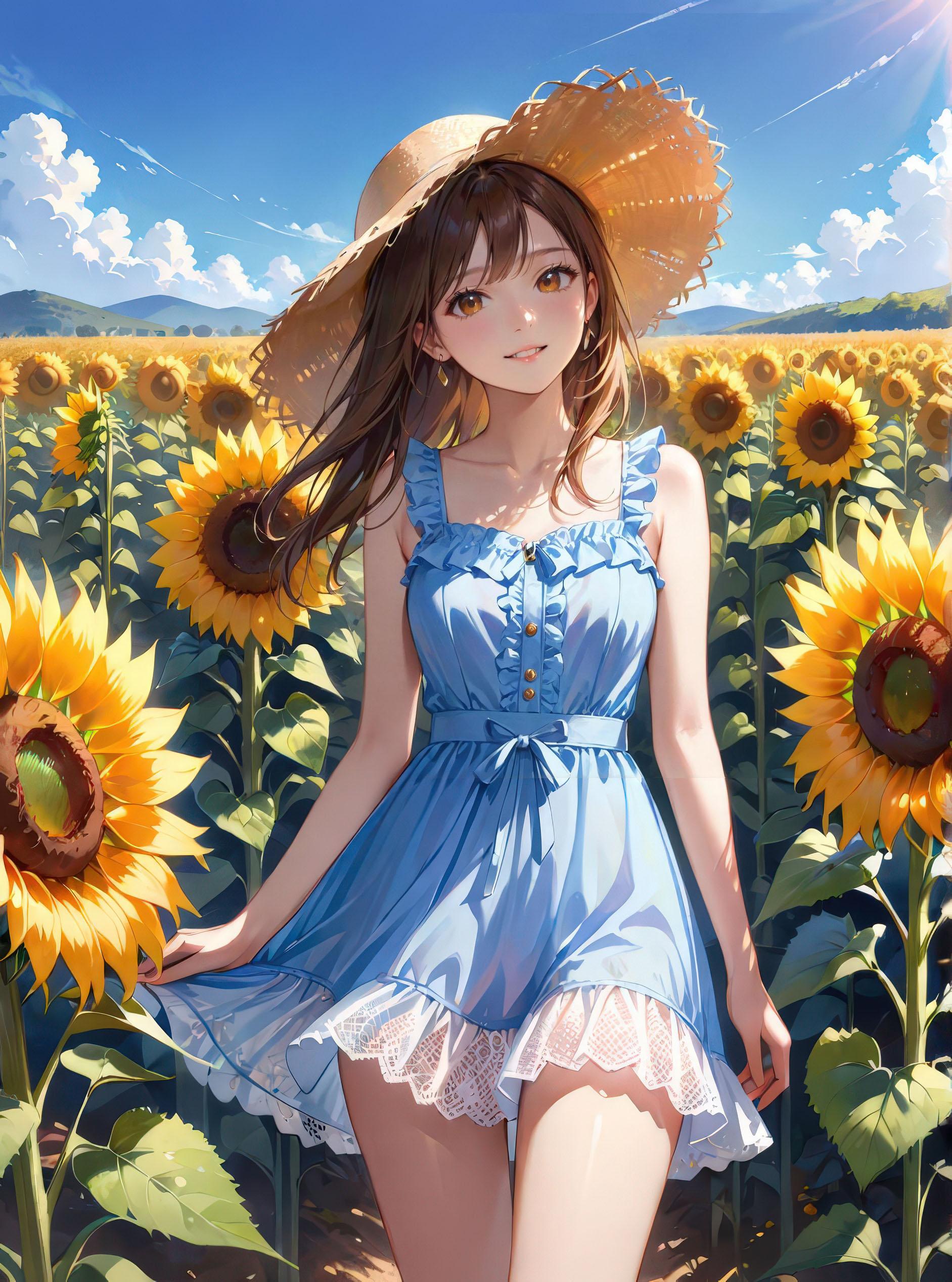 ひまわり畑と夏少女