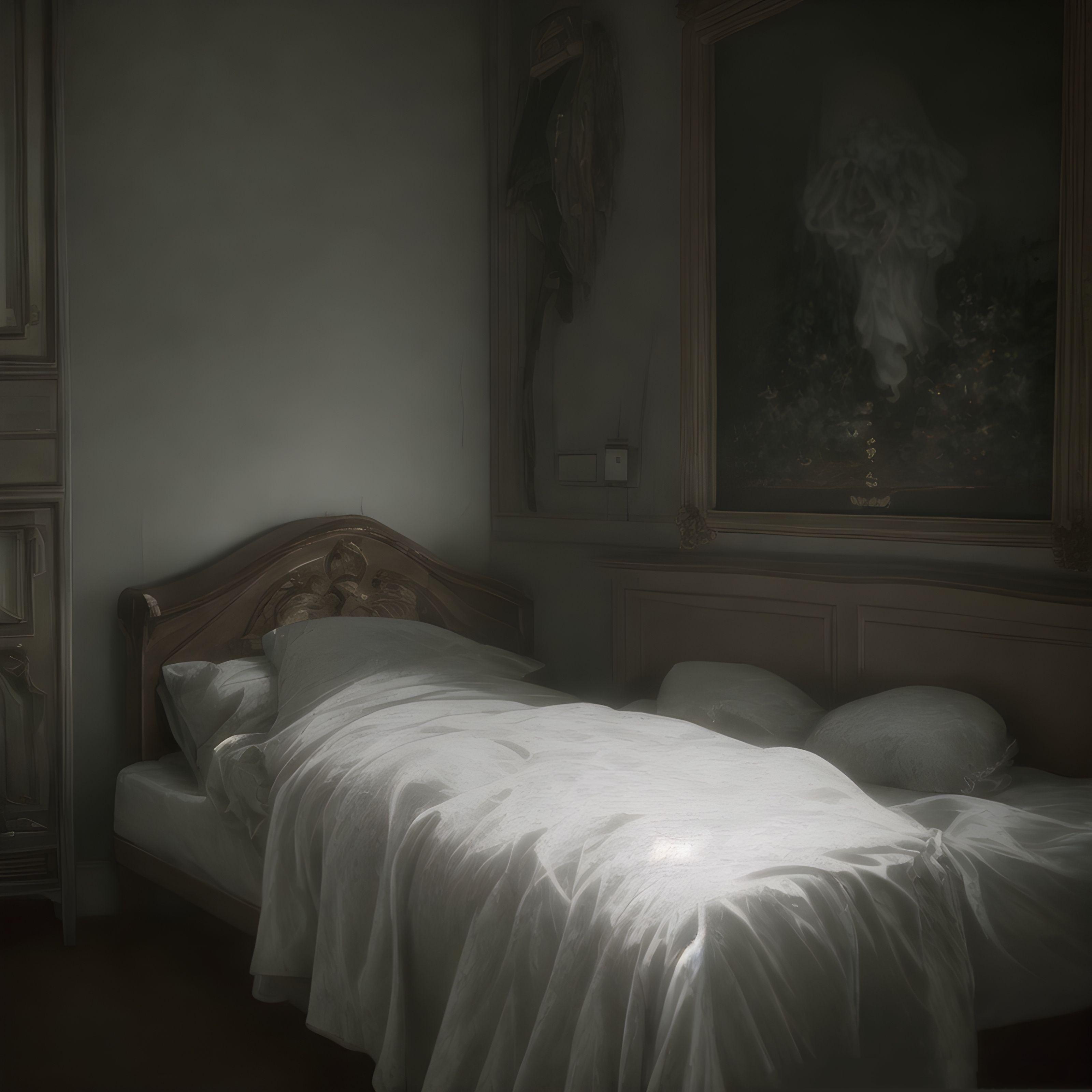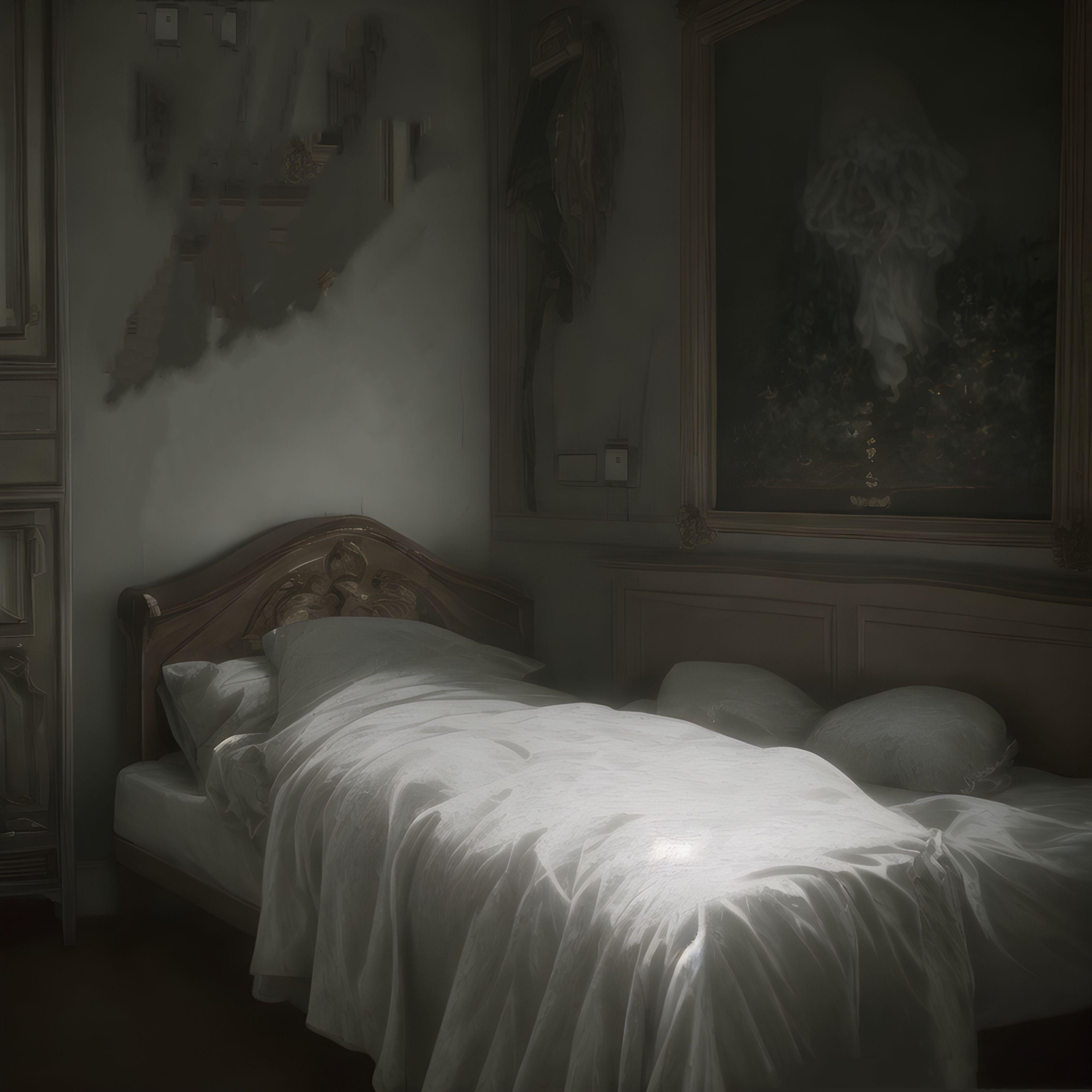 「館の寝室を撮影した写真で二枚目の写真には寝室の壁に奇妙な シミか汚れなのか、解らない物が写っていた」