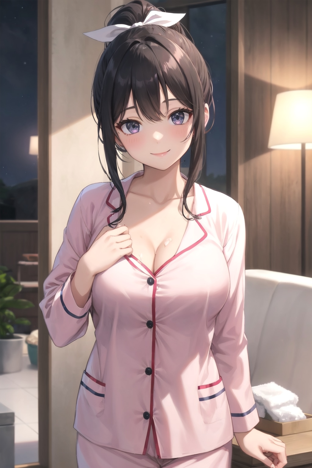 リビングで会社の予定表を確認していた旦那さんの所に若奥様がお風呂から上がってきました。